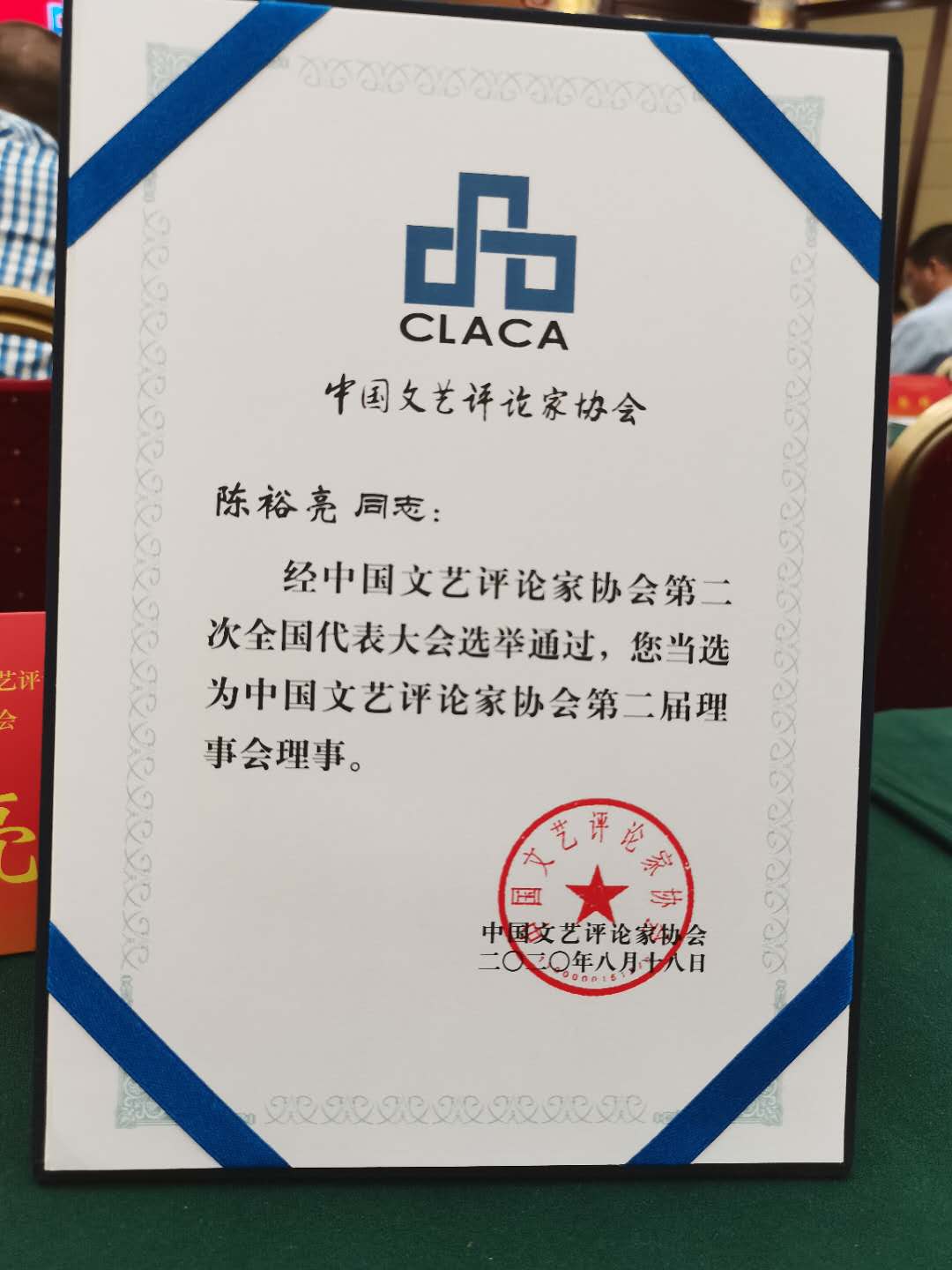 畫家、美術(shù)評(píng)論家陳裕亮出席全國(guó)代表大會(huì),并當(dāng)選為中國(guó)文藝評(píng)論家協(xié)會(huì)理事。