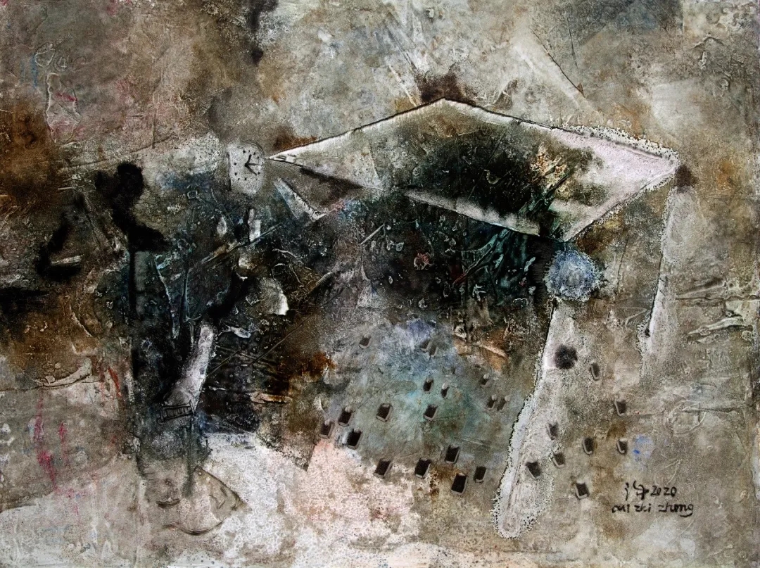 《烽火臺與方艙》紙本綜合45cm×60cm 2020