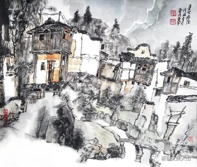 他努力實踐石濤“搜盡奇峰打草稿”的至理名言,熱愛生活,深入生活,真實感受新疆大山大水,用真情感受生活,又把真實感受升華在一幅幅畫作里。