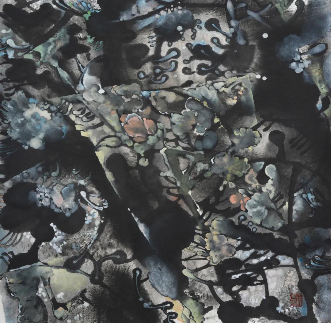 這就不是傳統(tǒng)中國畫的作畫起點。胸中非但無竹,胸中空無一物。然而這種破壞式起步的方式是具有強烈建設性的,目的是為了不在窠臼里打轉,一開始就用新鮮的東西引領著自己往下走,逼迫自身的非常規(guī)走向。