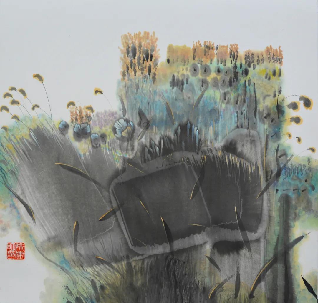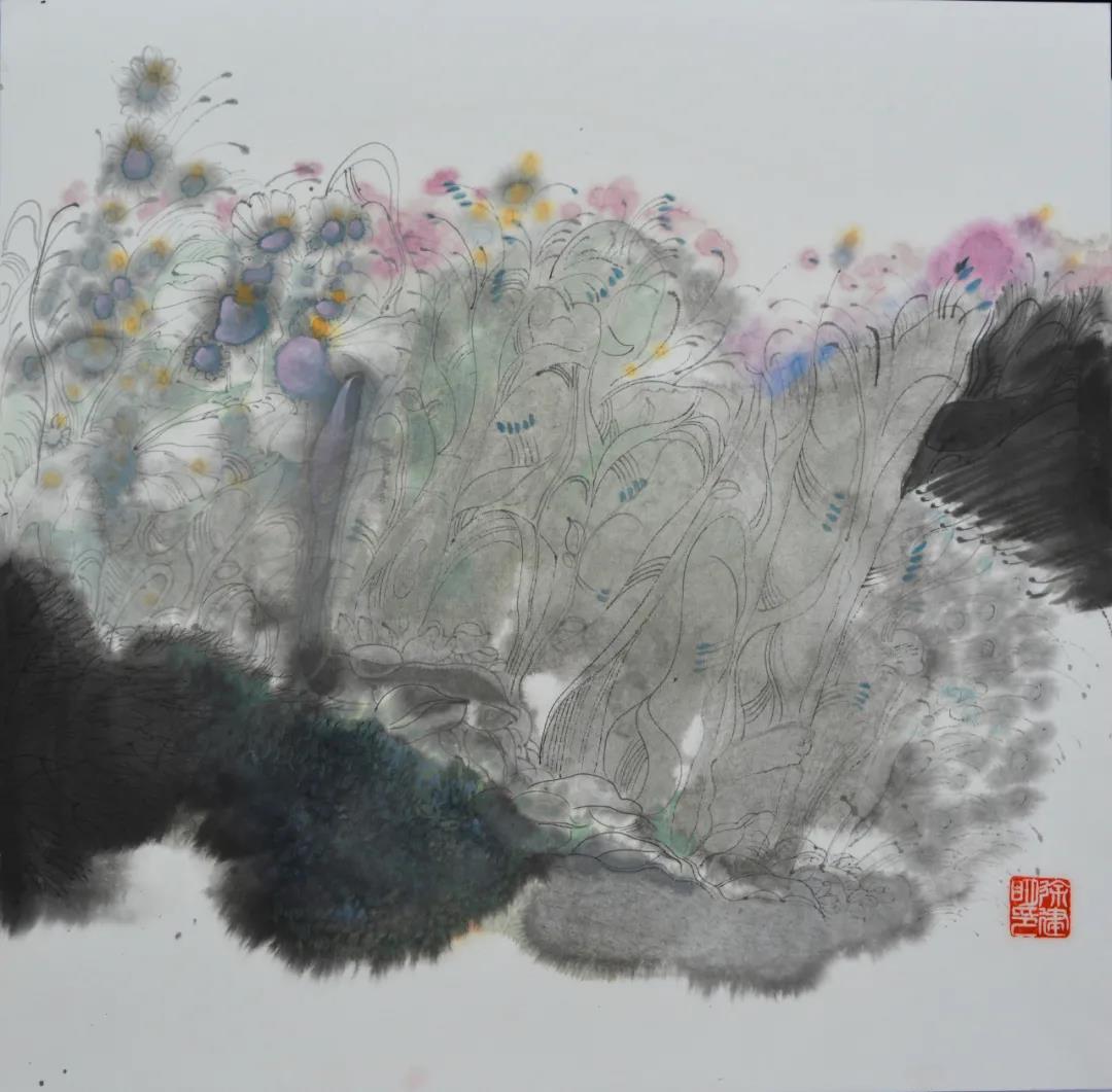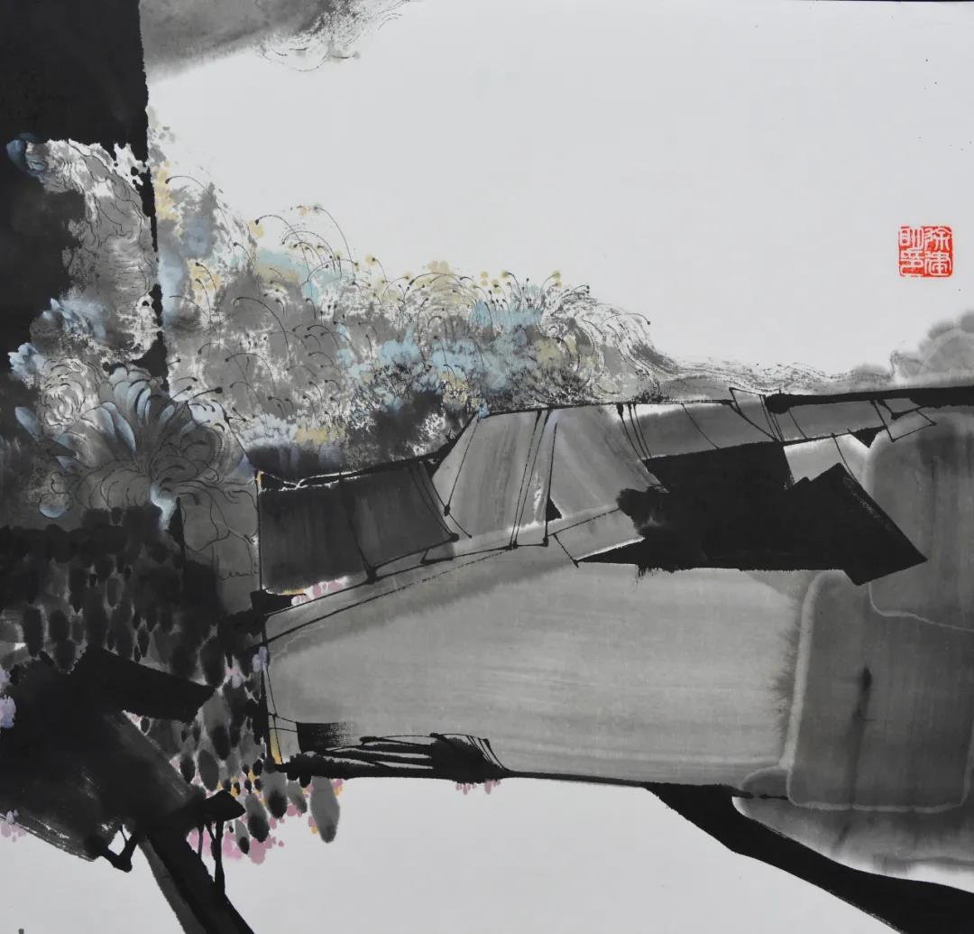 這些作品可用“中國畫”這一術語來定義的部分在于水墨關系和色彩趣味。對水墨的喜好是中國文人長年集體無意識的累積,而對繽紛色彩的追求則有強烈現(xiàn)代的特質(zhì)。我想提示大家注意到徐建明在處理墨與色之間的關系方面。墨與色在畫面中形成了高度和諧的狀態(tài),具有很強的整體性和內(nèi)斂感,整體傳遞出一種非常安寧的氣息。