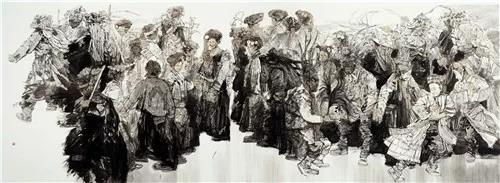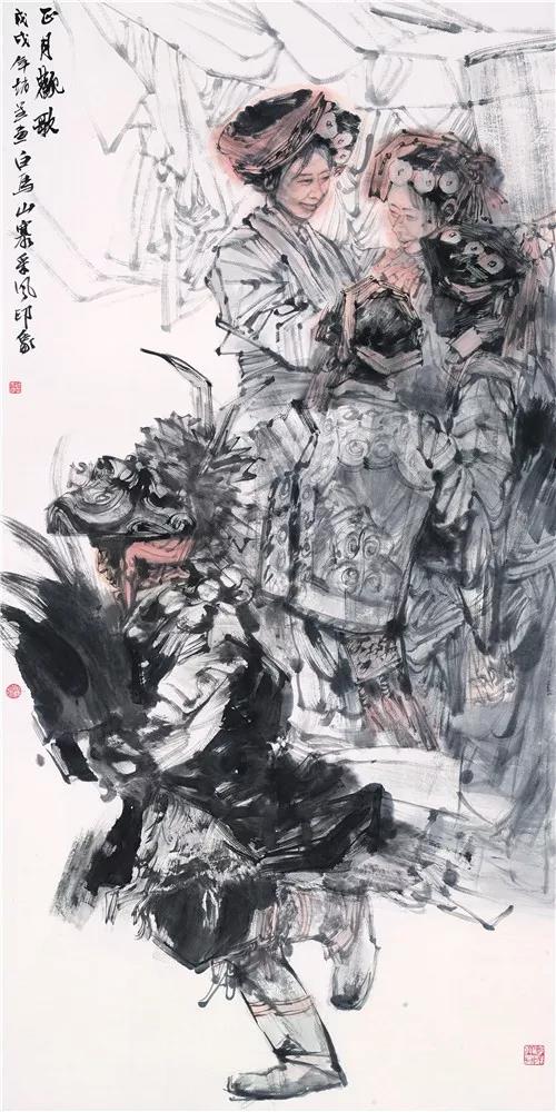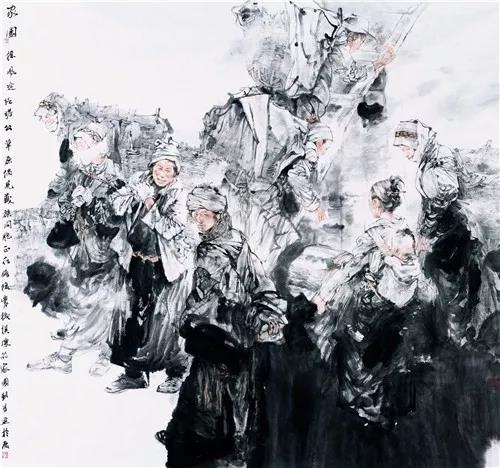 作為中國畫家,趙星表現(xiàn)出對水墨異乎尋常的敏感、敏銳,以他的出生和早年生活經(jīng)歷以及健碩的體格,原本似應(yīng)對強(qiáng)悍渾厚表現(xiàn)出與生俱來的偏好,但改變了生活環(huán)境的趙星,對于藝術(shù)語言掌控的變化顯得十分自然,甚至表現(xiàn)出優(yōu)于南方畫家對水墨的認(rèn)識理解。然而他熱衷的題材媒介,卻是生活在高原和西南的少數(shù)民族豐富多彩的生活情態(tài),有趣的是,趙星過濾去鮮明的色彩,還以單純的水墨,又以快捷勁挺的細(xì)線結(jié)構(gòu)造型,并且善于營造澄明淋漓的水暈?zāi)滦Ч?,令人稱奇。近年來趙星注重了用筆用線的厚重與蒼勁,兼以大塊墨色對比,突出了畫面主次和層次效果,取得明顯進(jìn)展。