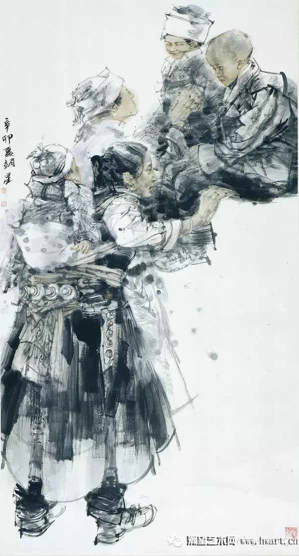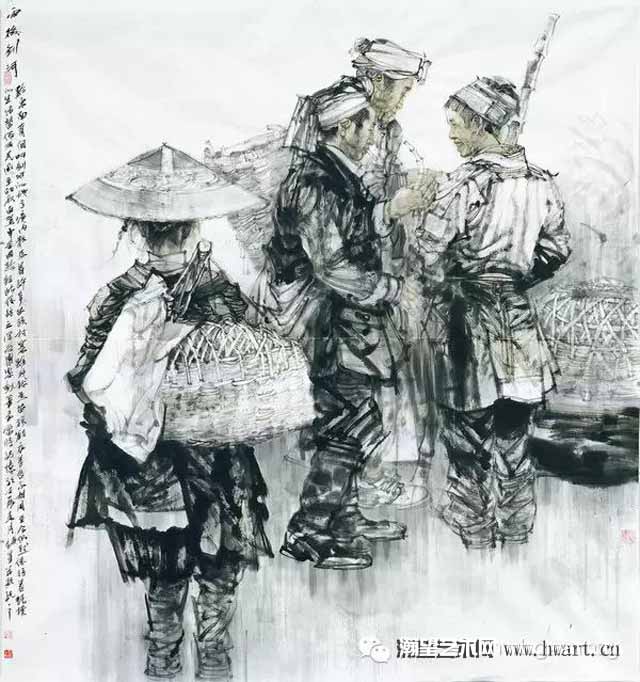 象《輕風(fēng)》、《帕米爾之歌》、《吉祥甘南》、《人間天堂》等新作,都漾溢著濃郁的現(xiàn)實(shí)生活氣息和西部高原的清新詩情;特別是畫家的抒情的筆致和墨韻,表現(xiàn)了他對“人”的主題的關(guān)注和理解,在繁簡、虛實(shí)、黑白、濃淡的對比中,營造了空間層次和人物關(guān)系的主次;而且,為使主要人物的性格與情懷得到典型性的表現(xiàn),畫家吸收并融入了某些寫實(shí)造型手法,給人物以明暗、光影的造型因素,使之生動并充滿生命活力,同時,又圍繞著典型人物進(jìn)行環(huán)境與氣氛的烘托,使作品獲得整體的充實(shí)與飽滿,進(jìn)而感染著欣賞者,這樣的作品溝通著當(dāng)代人的心靈,讓我們看到,處在現(xiàn)實(shí)生活中的畫家不可遏止的創(chuàng)作激情和藝術(shù)觀念;同時,我們也明顯地感覺到,在現(xiàn)實(shí)生活中,畫家所煥發(fā)的靈感與沖動。