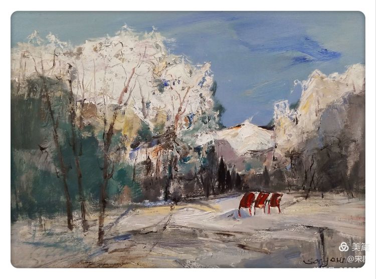 眼前的景色令我陷入沉思 ,四季中有蕭瑟也有繁盛,一如我們的人生,苦辣酸甜都是人生況味,都要微笑著去迎它。我從來沒有冬季在室外畫過寫生,而零下二十幾度在外面畫畫更是人生第一次,這也是在挑戰(zhàn)自己,對心態(tài)和毅力的一個考驗吧。