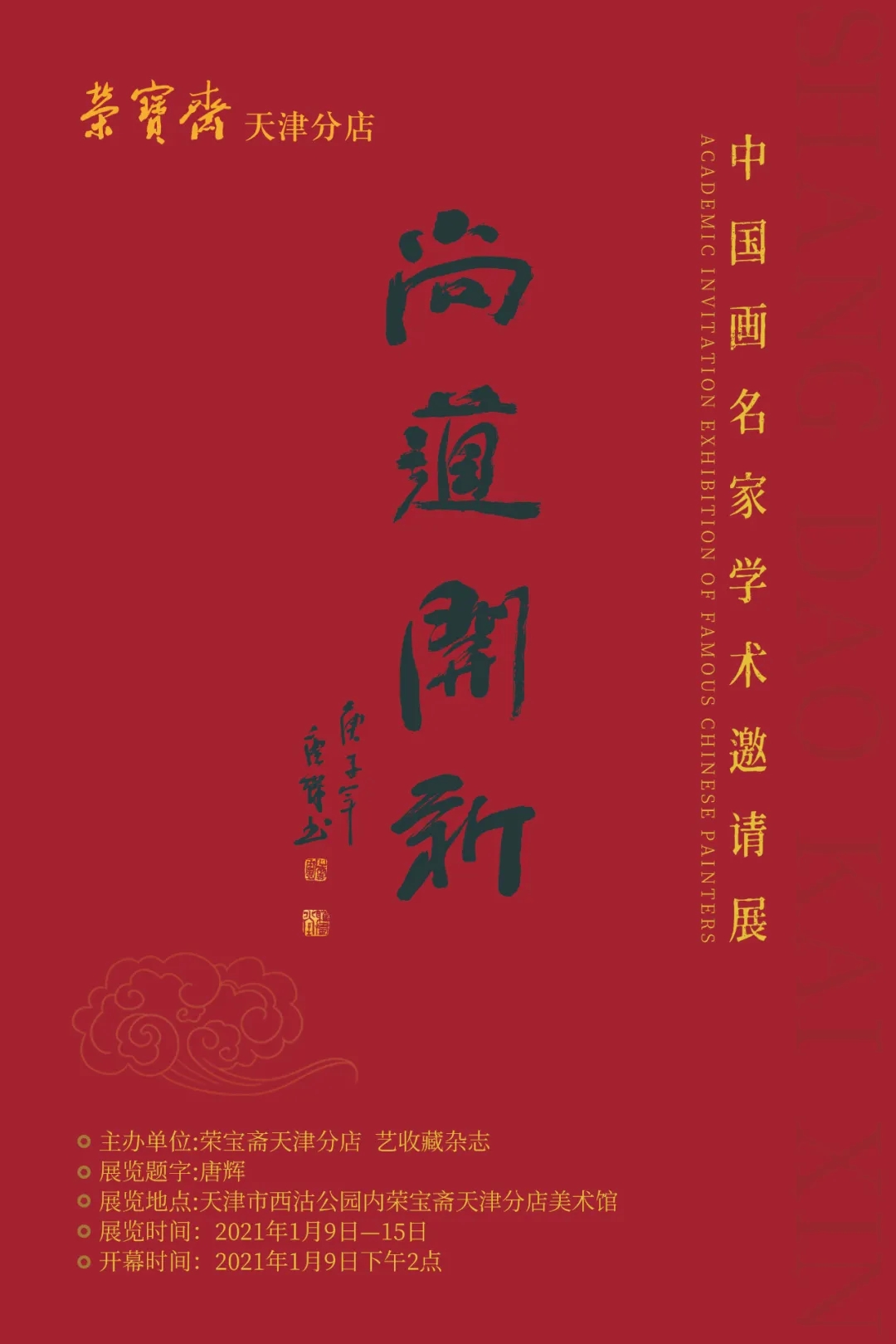 尚道開(kāi)新·中國(guó)畫(huà)名家學(xué)術(shù)邀請(qǐng)展。厚德尚道,打造新時(shí)代藝術(shù)盛典。2020年(農(nóng)歷庚子年)注定是一個(gè)不平凡之年。在此非常之際,本次展覽由榮寶齋天津分店、藝收藏雜志聯(lián)合主辦,致力從全國(guó)精選出德才兼?zhèn)涞膬?yōu)秀畫(huà)家。他們不僅畫(huà)技精湛,更是人品俱佳,可謂德藝雙馨的優(yōu)秀藝術(shù)家。