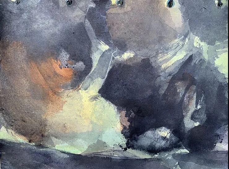 無法預(yù)測要經(jīng)歷多少折騰,更難逆料在哪個瞬間結(jié)束,要看他對畫面的滿意度。作品進(jìn)行過程,離對象的辨識度越來越遠(yuǎn),離他內(nèi)心想要的感覺越來越近,那些他想要的感覺與內(nèi)心合拍的那刻,是去掉什么與放進(jìn)什么達(dá)到那審美的激起,一幅作品在激起時完成。他的畫尺寸不大,卻有一個大氣象,好像是宇宙洪荒的一個局部,又好像是無邊無際大世界的一個概觀。心很大,世界隨之大,畫家與作品得到心的印證。