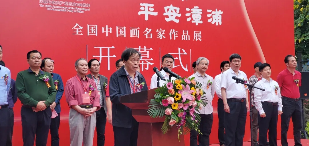 開幕式由中共漳浦縣委常委、政法委書記黃海明主持。中共漳浦縣委副書記、漳浦縣人民政府縣長(zhǎng)黃慶華,中國美協(xié)理事、中國畫學(xué)會(huì)創(chuàng)會(huì)理事、福建省美協(xié)名譽(yù)主席陳玉峰,中國美協(xié)理事、中國畫藝委會(huì)委員、福建省美協(xié)名譽(yù)主席翁振新,福建省美協(xié)副主席兼秘書長(zhǎng)趙勝利先后致辭。蒞臨漳浦的著名畫家們向主辦單位捐贈(zèng)了二件大幅精品力作。最后,由福建省文聯(lián)副主席、書記處書記、福建省美術(shù)家協(xié)會(huì)主席王來文宣布展覽開幕。