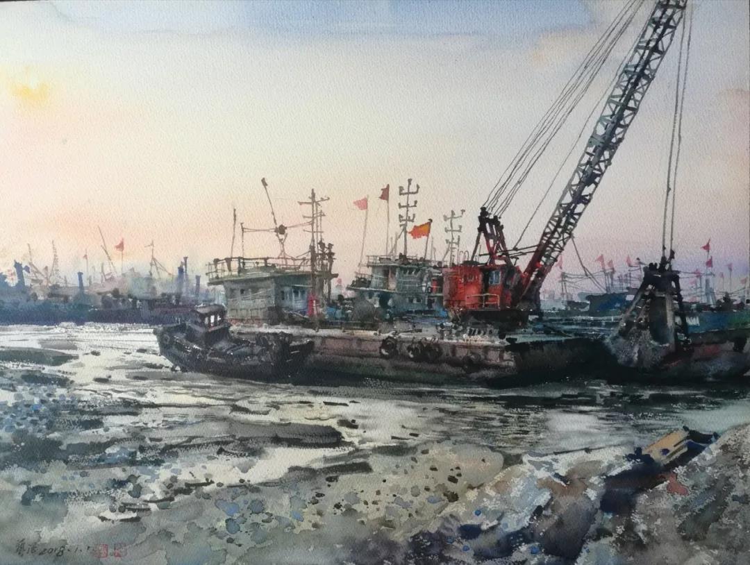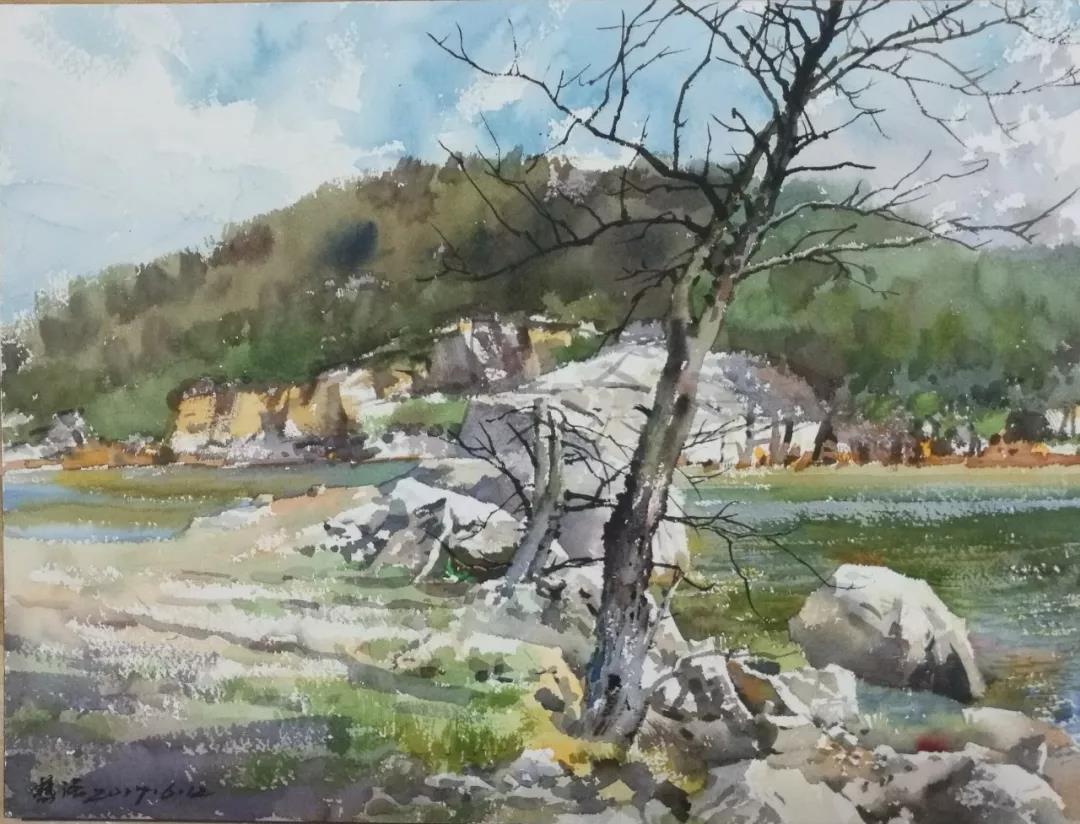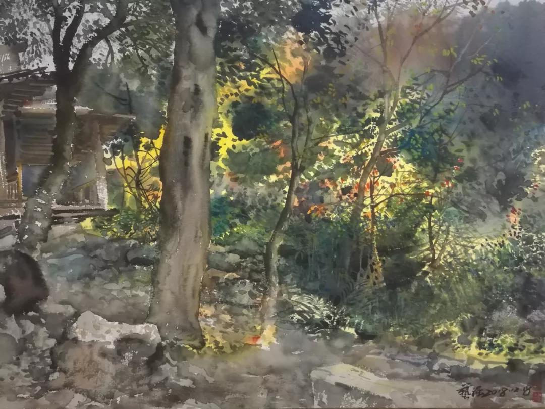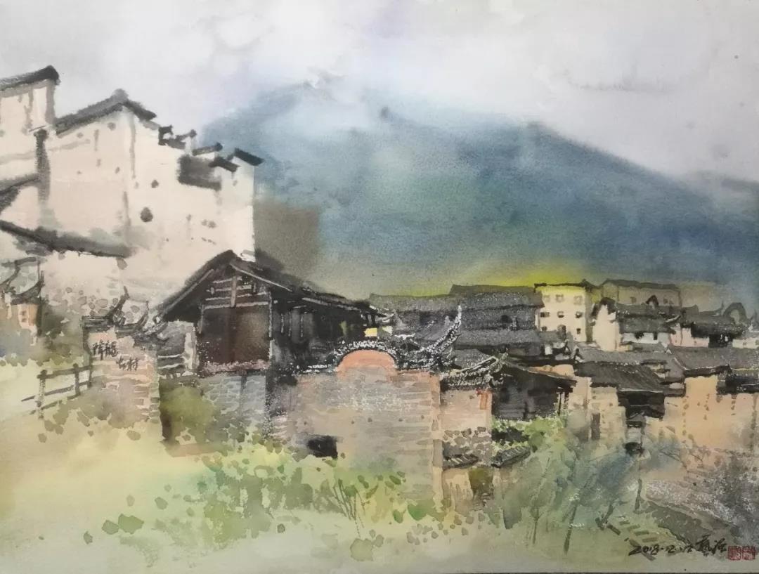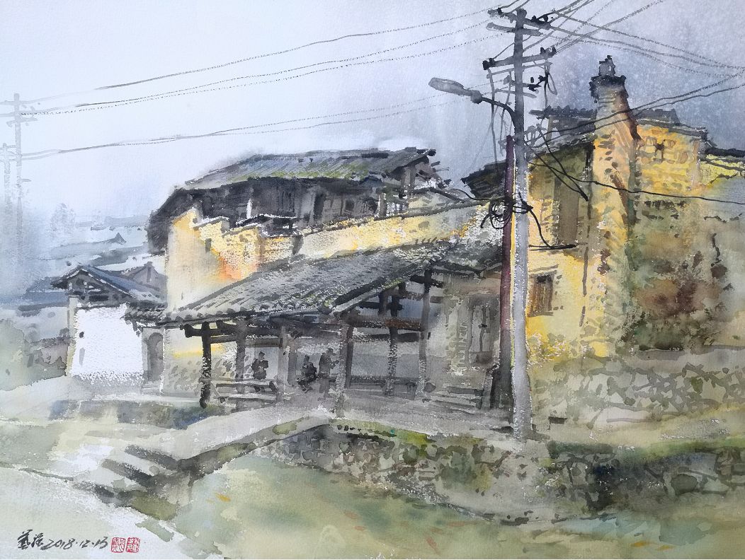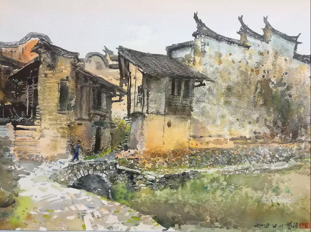 戴毅強(qiáng)先生除了擅長(zhǎng)油畫外,于水彩畫亦是“手與神運(yùn),藝從心得”。他兼收并蓄,淹貫眾有,善用深入淺出的語言表達(dá)自己獨(dú)特的審美觀和世界觀,讓人感受到“高韻深情,堅(jiān)質(zhì)浩氣”的雅趣。當(dāng)他積跬致遠(yuǎn),潛學(xué)升華,其對(duì)水彩語言的把握更加精妙。2012年在參加第十屆全國(guó)水彩·粉畫展中,他的一件作品被廣西水彩博物館收藏。這成績(jī)來之不易,也是驕人的,但戴毅強(qiáng)先生心淡如水,因?yàn)樗麑?duì)自己的藝術(shù)有新的方向。他需要時(shí)間來千錘百煉,而不是那云煙般的鮮花和掌聲。他有意識(shí)地要承接傳統(tǒng)文脈,實(shí)現(xiàn)洋為中用的完美結(jié)合。