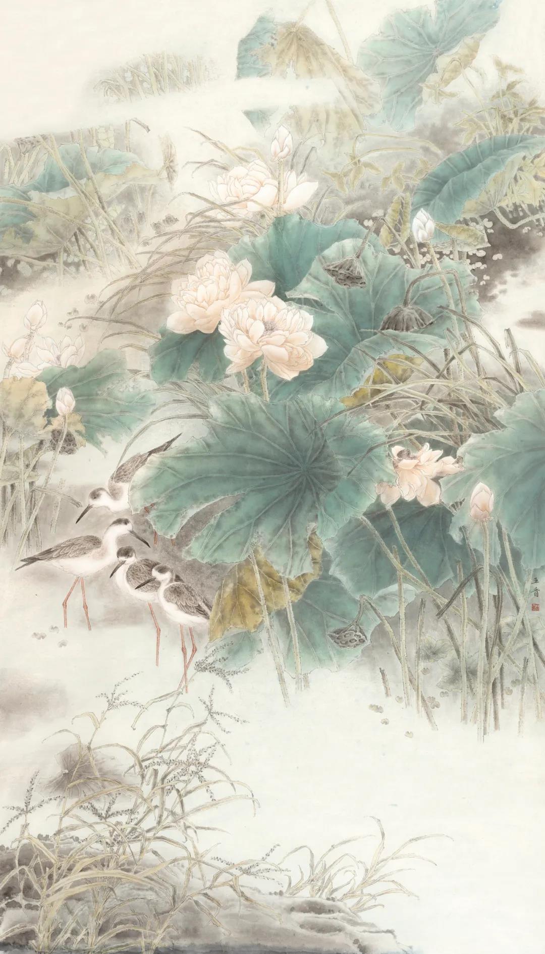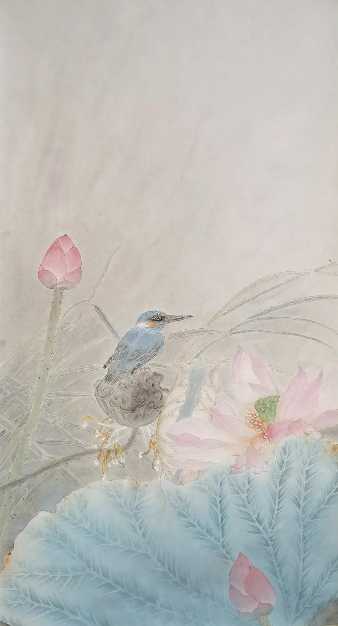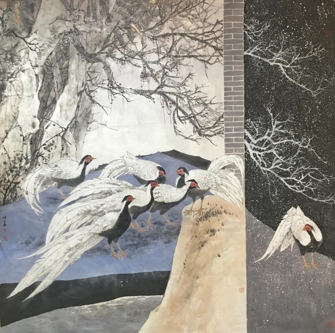 時(shí)光流轉(zhuǎn),學(xué)生們無(wú)論年齡長(zhǎng)幼,無(wú)論求學(xué)路途遠(yuǎn)近,無(wú)論聰慧愚鈍,均虛心請(qǐng)教,孜孜以求,筆勤不殆。數(shù)年下來(lái),亦有所進(jìn)益,更有不可同日而語(yǔ)之大進(jìn)步。老師亦為所悅,親選學(xué)生代表作品參與本次展覽,以示鼓勵(lì)勸進(jìn)。此次畫展,共展出北京畫院鄭雅風(fēng)工作室?guī)熒?00件作品,學(xué)生作品尺幅從扇面小品到2米大幅全景花鳥(niǎo),僅以示求學(xué)之所成,教學(xué)之印記,亦猶如一場(chǎng)永無(wú)止境的修行,得片刻休整,自此,便只顧風(fēng)雨兼程。