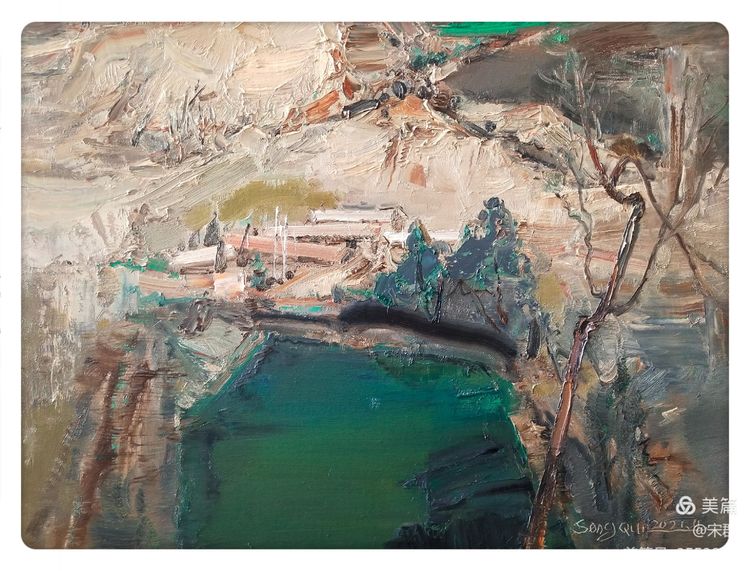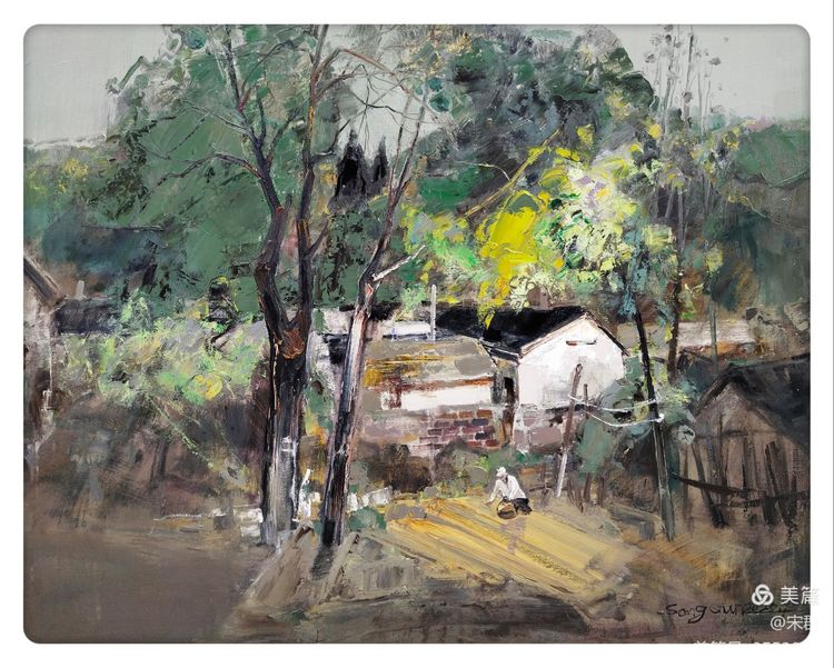 因而,飽蘸著綠色的畫筆在雨露麻上流動(dòng),這抹綠略帶著對(duì)春的眷戀與傾訴,那么舒展,那么自信而響亮??蛇@種自然美的生成,又為畫家們出了一個(gè)難題,因這鮮活而充滿張力的綠色,是畫家們用畫筆表現(xiàn)不出來的,它們靈動(dòng)而充滿活力的樣子,很難準(zhǔn)確地在畫面上呈現(xiàn)。