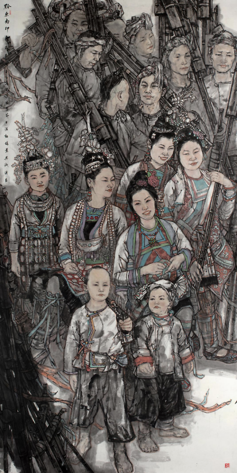 《岜沙苗寨二〇一八》240×200cm 2018年12月5日作品《岜沙苗寨·二O一八》入選“第三屆中國(guó)民族美術(shù)雙年展”獲(入會(huì)資格)并被中國(guó)美術(shù)家協(xié)會(huì)組委會(huì)收藏。