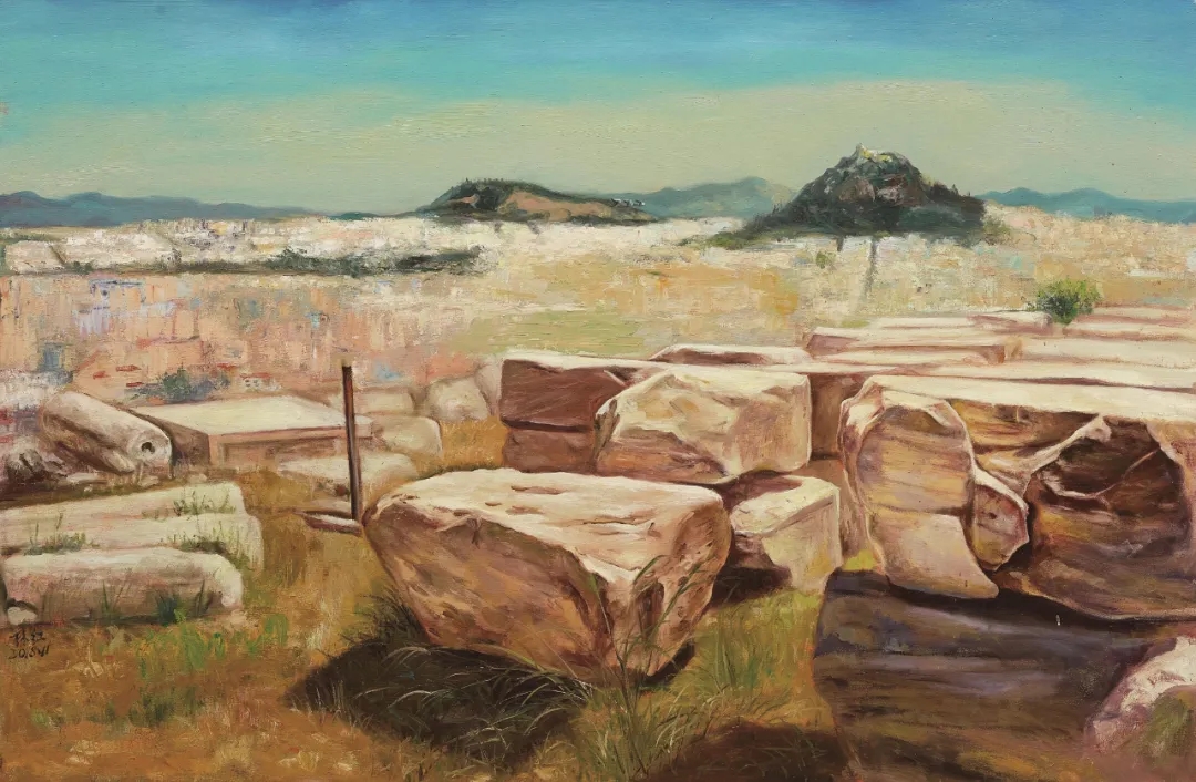 雅典衛(wèi)城倒塌的神廟 布面油畫 180×120cm 2019年