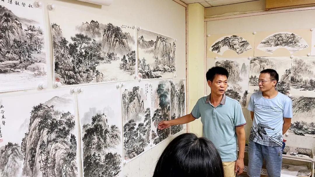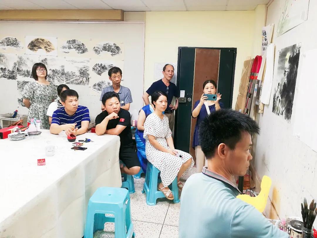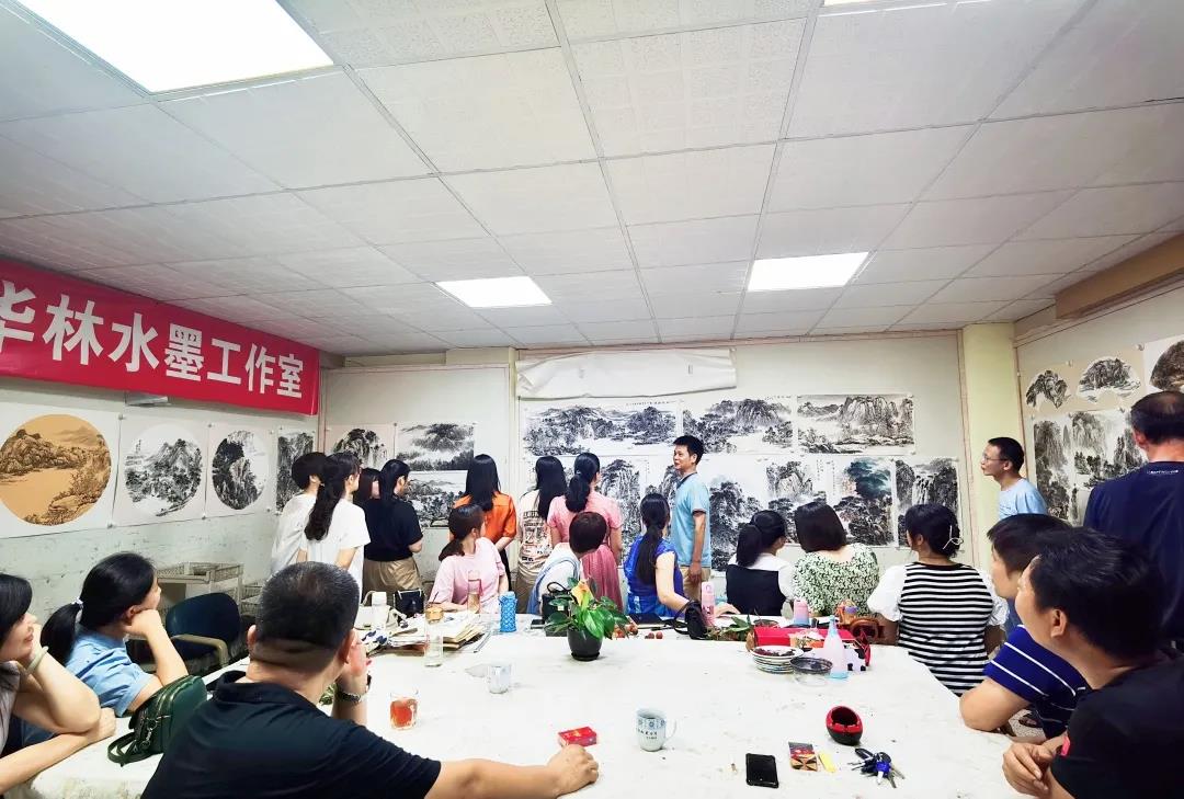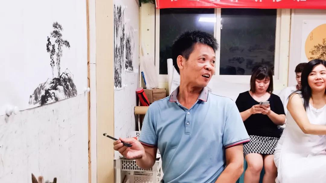 .20日晚,漳江兩岸,燈火輝煌,江面碧波蕩漾,倒映著闌珊燈火。老橋邊上,吳華林水墨工作室,人頭攢動(dòng),不時(shí)爆出陣陣掌聲。畫家吳建富先生今晚應(yīng)邀做客吳華林水墨工作室,帶來近作三十幾幅與工作室學(xué)員講學(xué)交流并進(jìn)行創(chuàng)作示范。