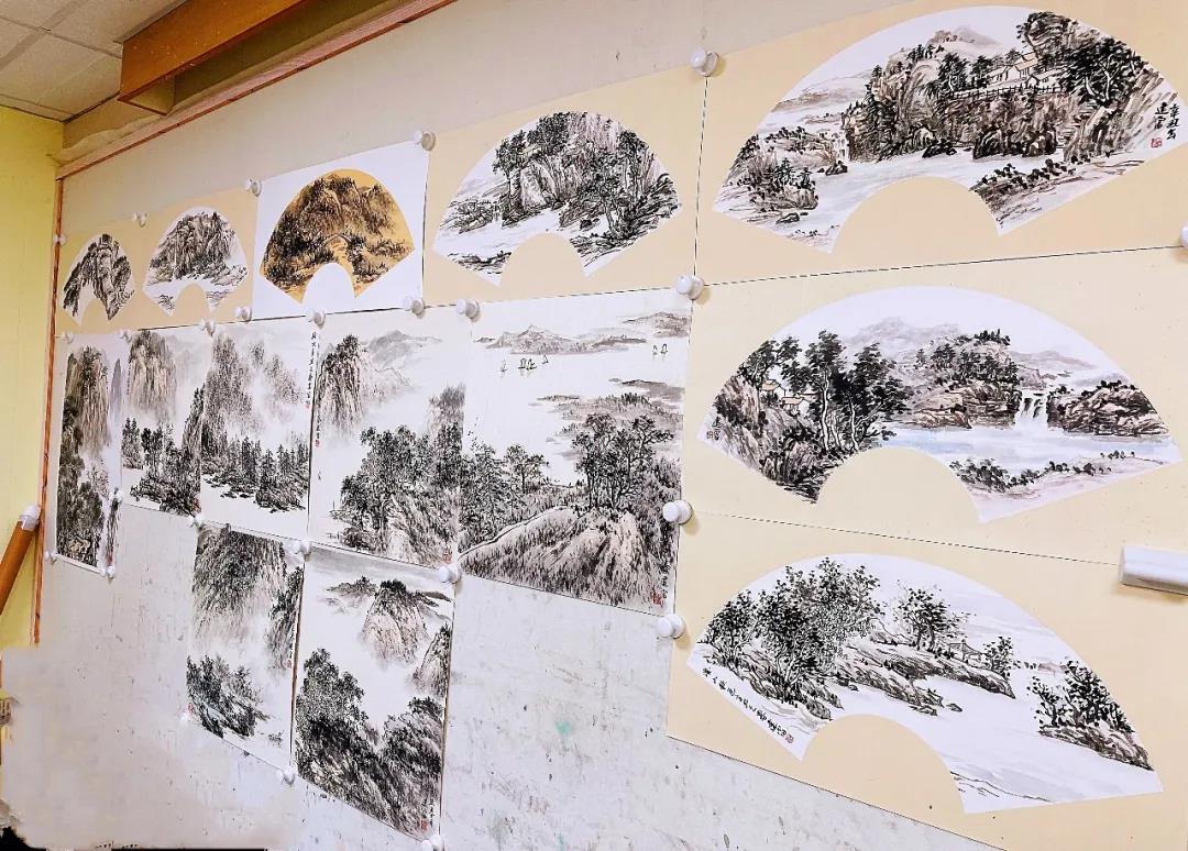 而后,吳建富先生就中國(guó)山水畫的寫生與創(chuàng)作,用線造型的特點(diǎn),以及個(gè)人設(shè)色風(fēng)格給大家詳細(xì)闡述講解,不時(shí)回答學(xué)員提出的問題。