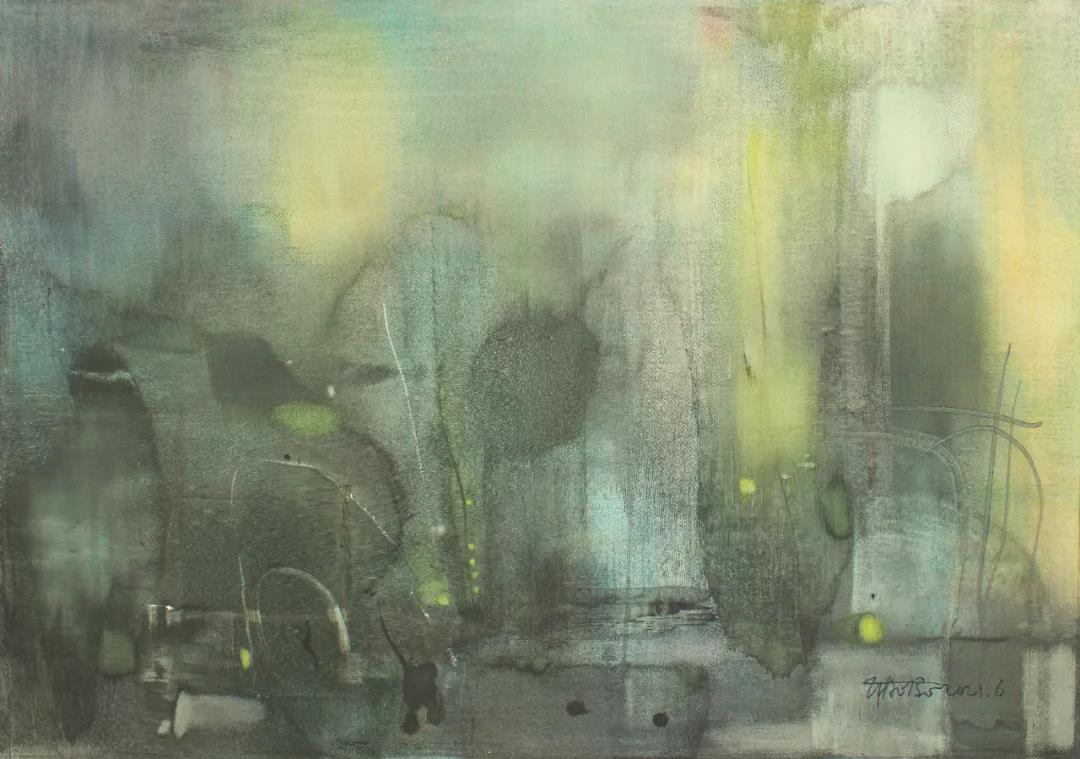 《致靜·昔境》,紙本水彩,53.5x76.3cm,2021年