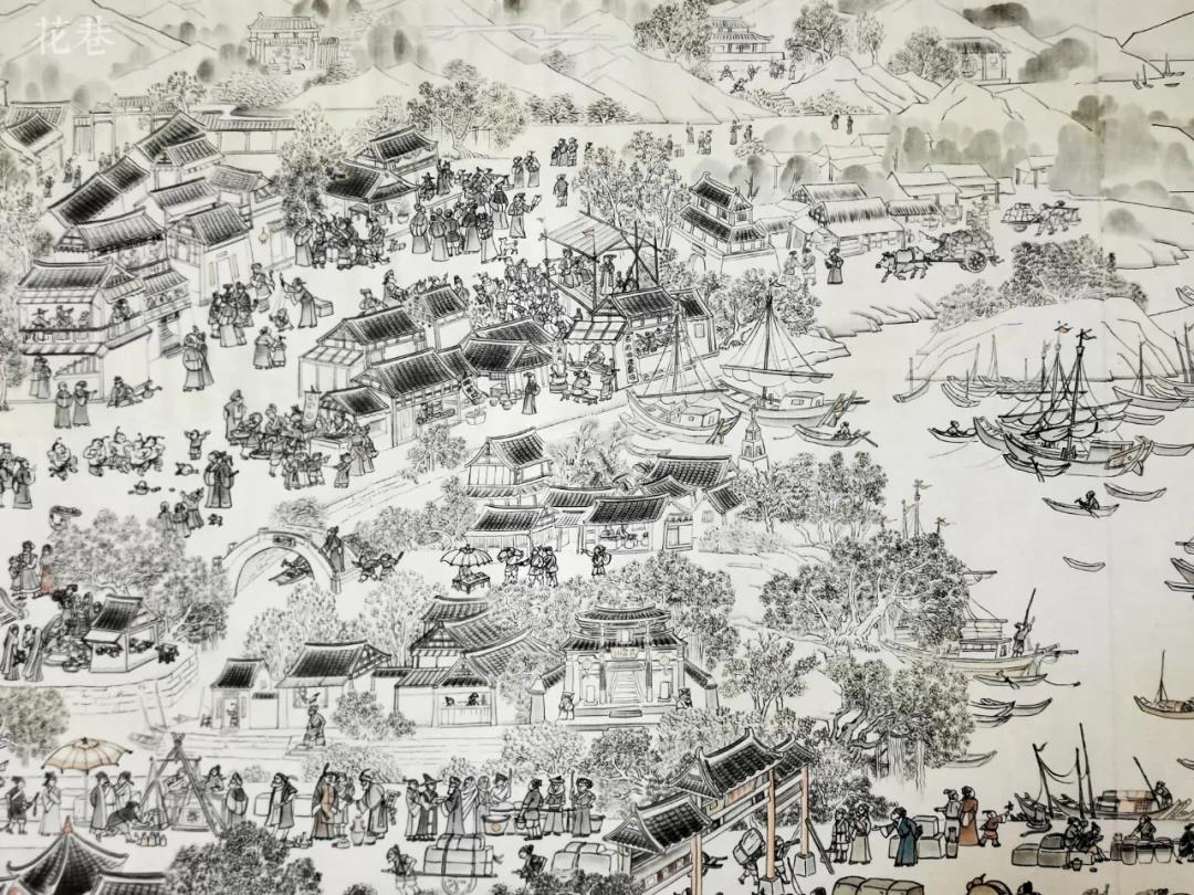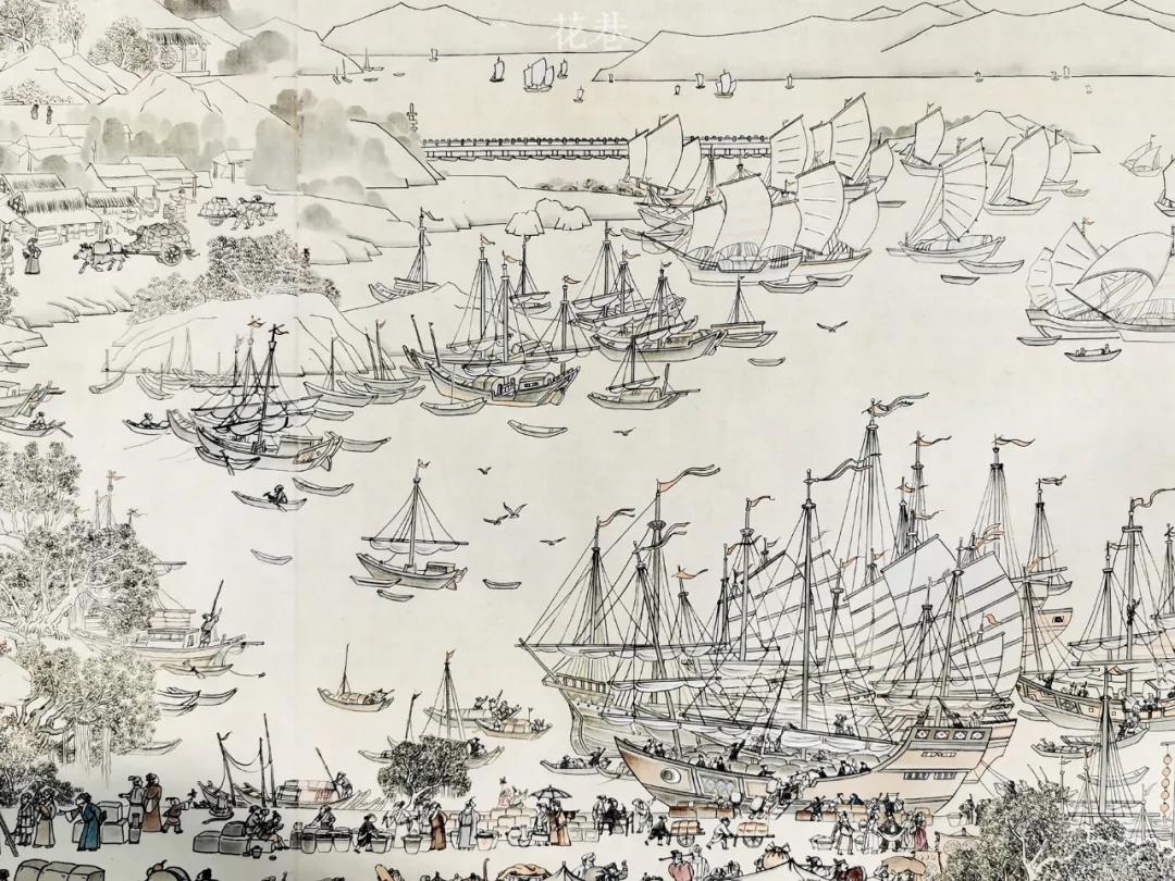 他覺得,這次能夠高質(zhì)量完成《刺桐夢華圖》也得益于剛完成的海絲長卷創(chuàng)作經(jīng)驗。早在2017年,他就著手創(chuàng)作一幅可以宏觀展現(xiàn)古泉州海洋文化淵源、海絲遺跡、商貿(mào)、宗教、民俗及非遺等各種文化的長卷。