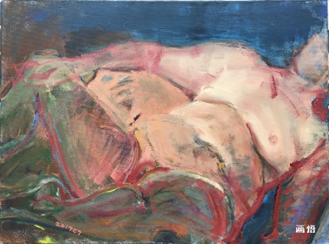 她發(fā)布在微信朋友圈的寫生圖片里,作品間夾雜被畫她者的照片。這個(gè)不明身份的她者,坦然為女畫家開(kāi)放,除對(duì)繪畫探索付出全力支持外,不排除她者與她有共鳴的心理歷程。