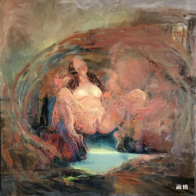 女畫家內(nèi)心里有無(wú)形空間,無(wú)形空間像個(gè)后花園,她常在影影綽綽花徑通幽的綠蔭下,獨(dú)坐飲茗,思緒綿綿。思是情之動(dòng),情動(dòng)而生欲,女畫家雖不執(zhí)迷欲望,也排解不了生命涌動(dòng)的激情,只好借畫筆肆意揮灑,用繪畫語(yǔ)言撫慰跌宕起伏的內(nèi)心。