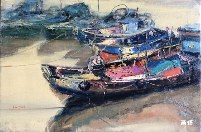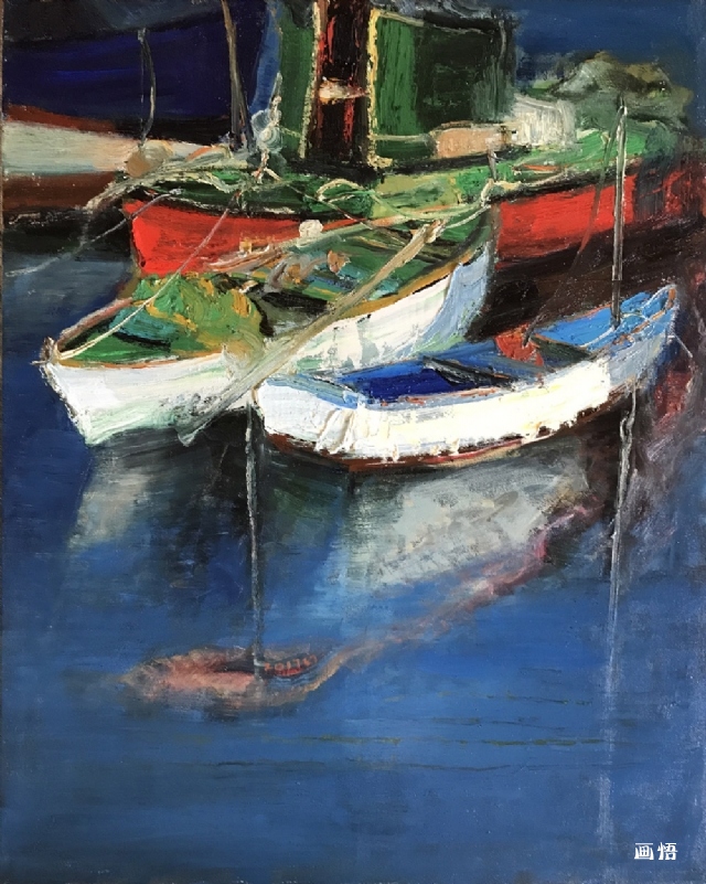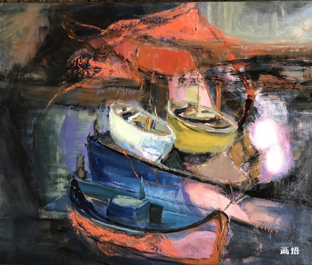 她畫的船,亦如智者充滿焦慮地在江心低調(diào)地跋涉與咆哮!天黑下來,像一只勞累的眼簾在月光中睡熟!但黎明翻身的同時(shí),王聰把世俗變成一劑猛烈的春藥,指引著親愛的讀者瞬間欣喜地看到畫面背后那雙改變世界的,魔術(shù)師雙手……。