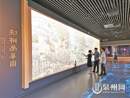 當(dāng)你走進(jìn)泉州海外交通史博物館,抬頭望去,一幅《刺桐夢(mèng)華圖》作品放大版被懸掛在館內(nèi),千年前刺桐港、刺桐城無(wú)盡的繁華盡收眼底。據(jù)館方介紹,此幅畫作展出后,來(lái)館里參觀的本土和外來(lái)人士絡(luò)繹不絕,好評(píng)如潮。