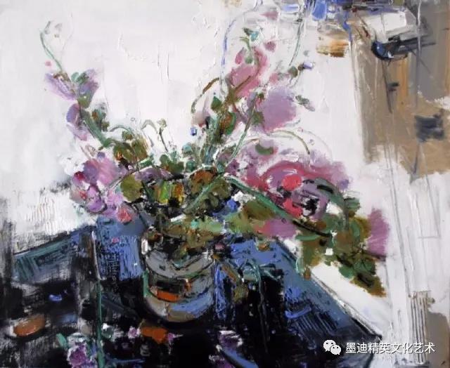 他的作品很有張力,用筆帥氣而肯定。一條條溪水,一個個村落,一座座山丘,一艘艘船舶都是他鐘愛的創(chuàng)作素材,就連鶯鶯燕燕的花卉,也會有著自己的表情出現(xiàn)在他的畫布之上。這些題材向月光一樣,點(diǎn)亮著他的激情,點(diǎn)亮著他的作品。