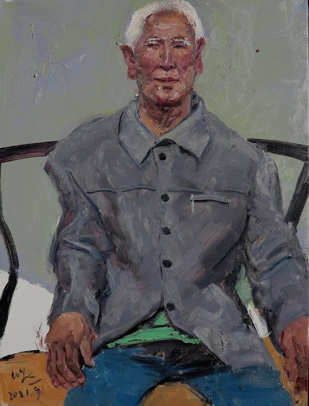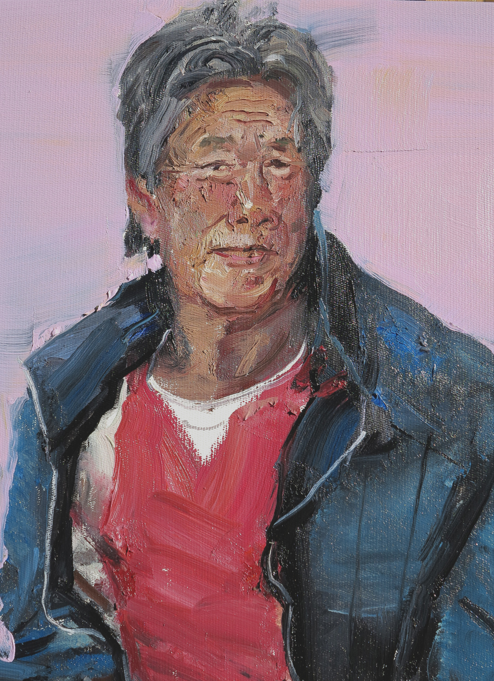近期我以油畫肖像的方式采訪并寫生了部分代表性的村民,有入村干部、志愿者,有歷經(jīng)了菜籽溝滄桑巨變的老人,有依靠農家樂致富的帶頭人,有多年以來以專事接待畫家藝術家并建立了良好關系的農戶,這不僅使得當?shù)剞r民與城市間的互動拉近了距離,也使得城市文明進入了鄉(xiāng)村。通過這些肖像的應運而生使我更進一步的了解了農村,也見證了當下農民的新生活的變化,相信不遠的將來社會主義新農村建設必將在菜籽溝越做越好。