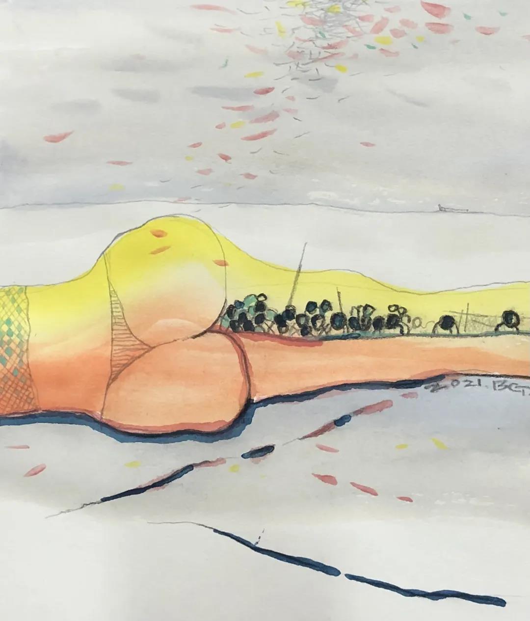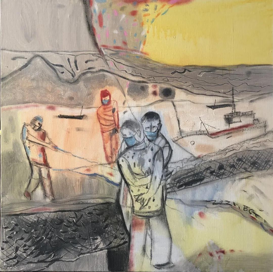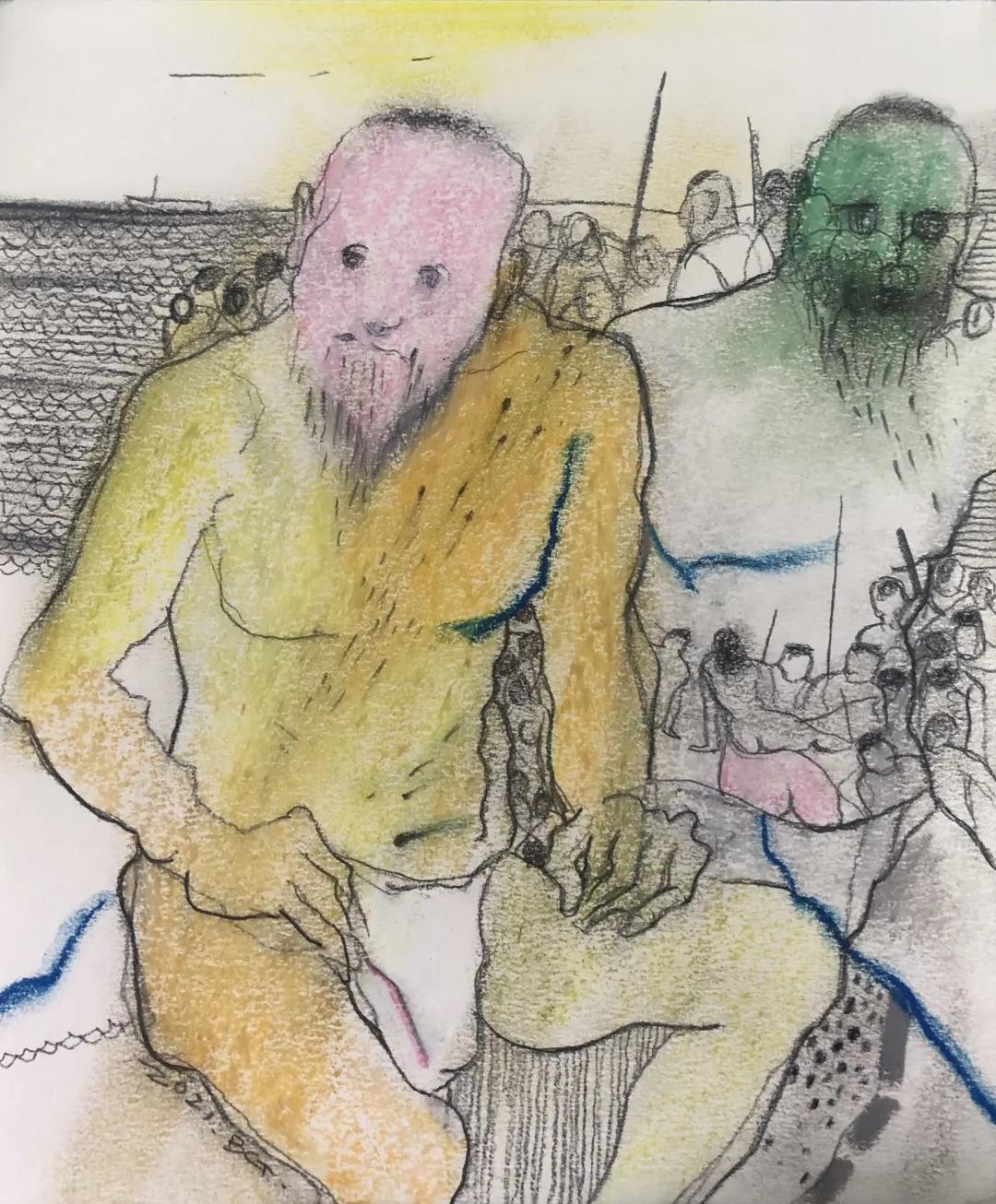 沒錯,斑駁破舊的漁船還在出海捕釣,港口夜晚的漁火依舊星星閃爍。人影憧憧,男女錯雜,時空疊加,意象繁復。說穿了,現(xiàn)實中根本不存在這樣的場景,這是虛構編造,是作者的胡思亂想??善婀至?,土著如我卻不由自主地被帶入,恍若白日夢,仿佛回到從前,又分明就是當前。能看到畫面散發(fā)的煙火氣,能感覺到人群的體溫,以及欣喜、興奮、平靜、惆悵、困惑的情緒傳遞。生命活力無法編造,莫非這都是“寫生”?藝術的主旋律永遠是離經叛道,不同于生活,有它自己的真實??此频牟淮嬖?,并不意味著不可能。只有對現(xiàn)實進行超越和重塑,才能滿足藝術家“說夢”的欲望。