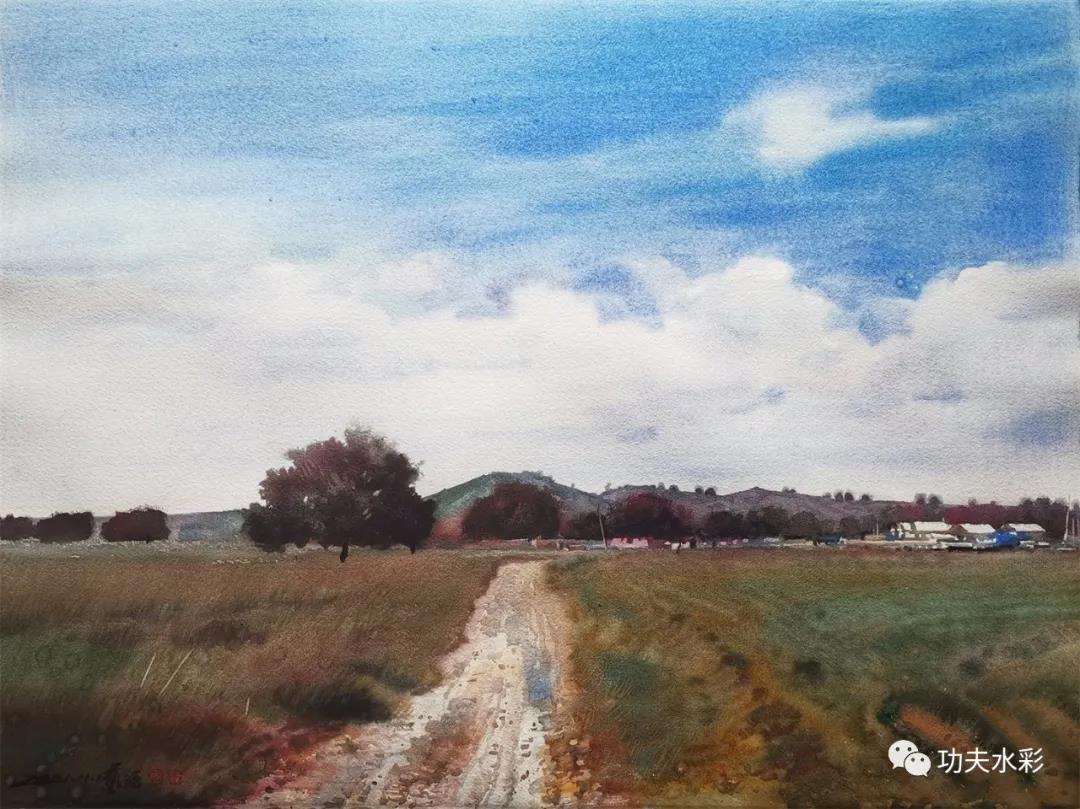 寄思于畫,獨有格局。無論是秋系列作品,還是民居系列作品,無一例外都是在油畫里嵌入了東方審美的寫意精神,是謂隨類賦彩,氣韻生動的水彩畫奇觀!從這個角度來論,他的水彩畫不但擁有文化融合的影響力,也有專業(yè)創(chuàng)新的主導力。當繪畫的精研技法與深刻主題融為一體之時,畫道則曰大,大功謂告成!