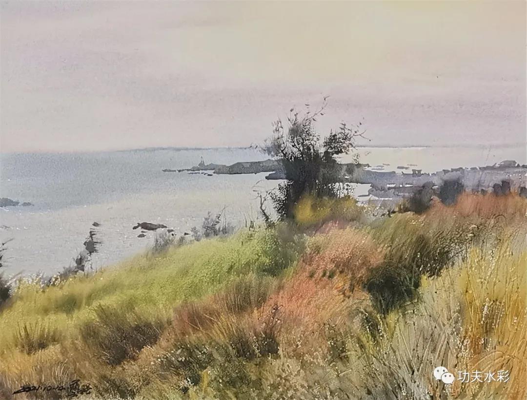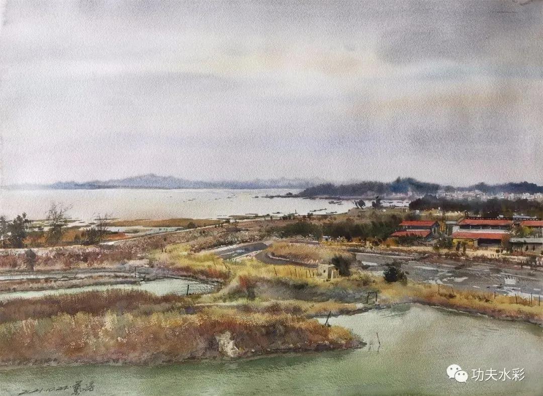 《秋色一一小岞生活藝術島環(huán)島公路》水彩畫 56x76cm