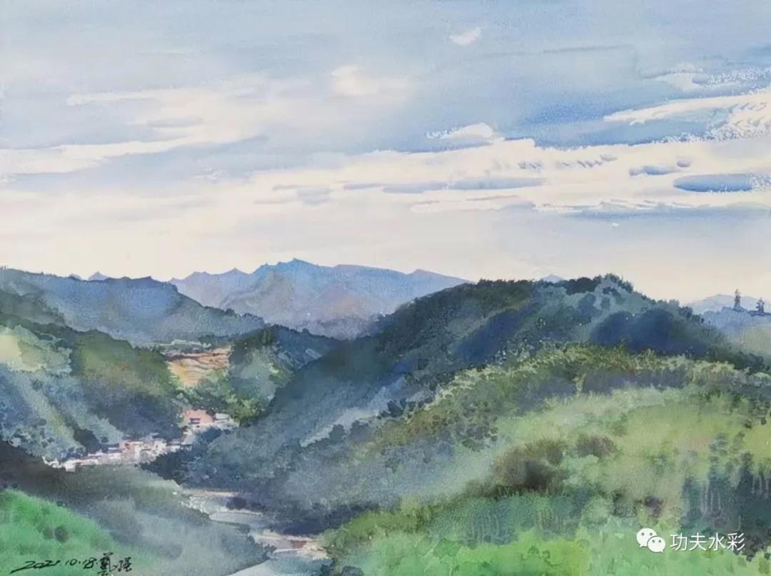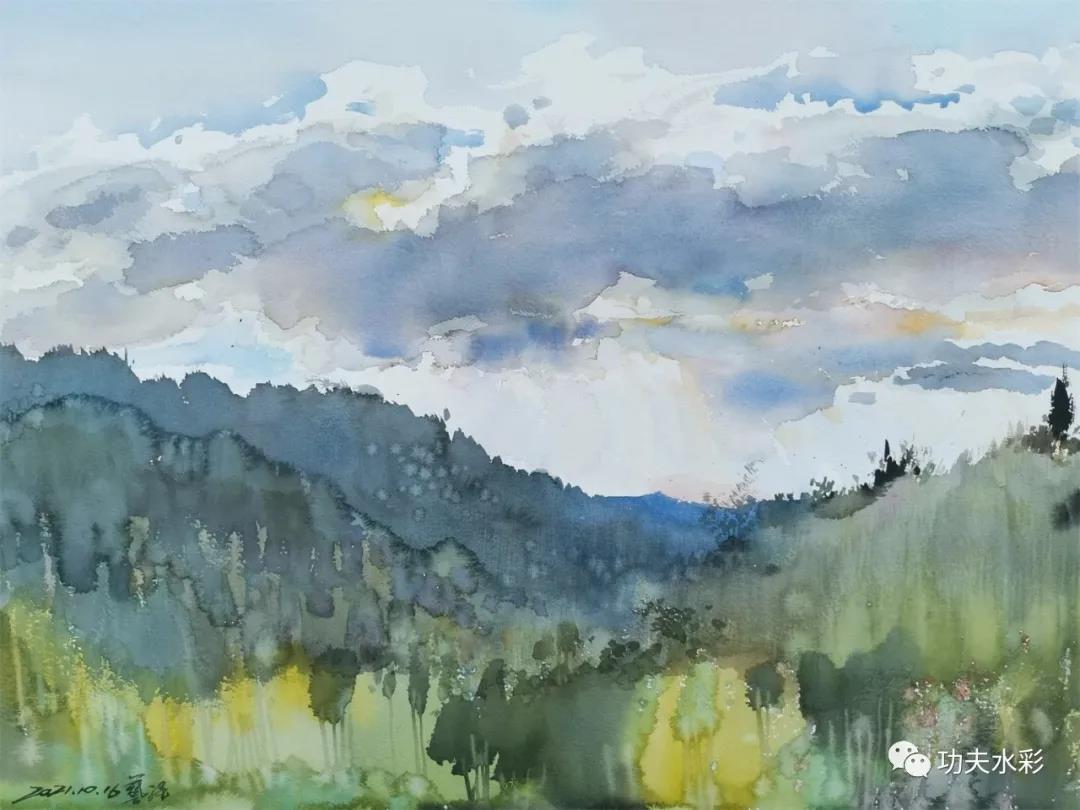 《祥云之光一一樂峰明英園山水》水彩畫 46x61cm