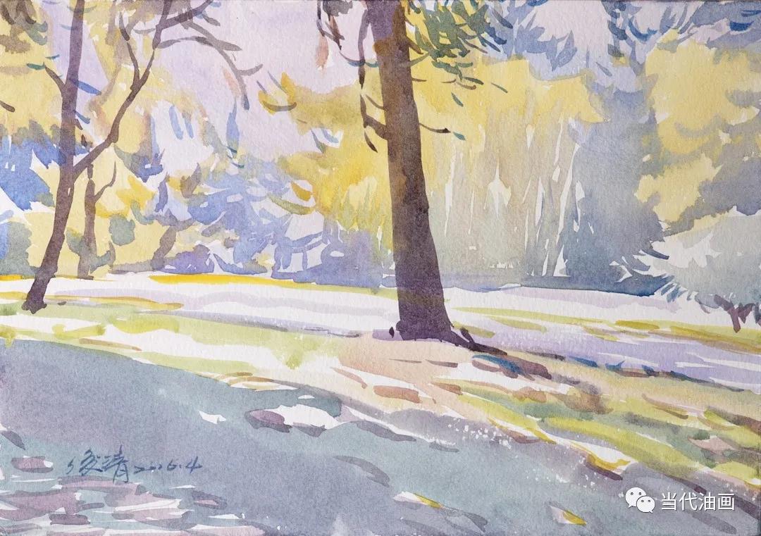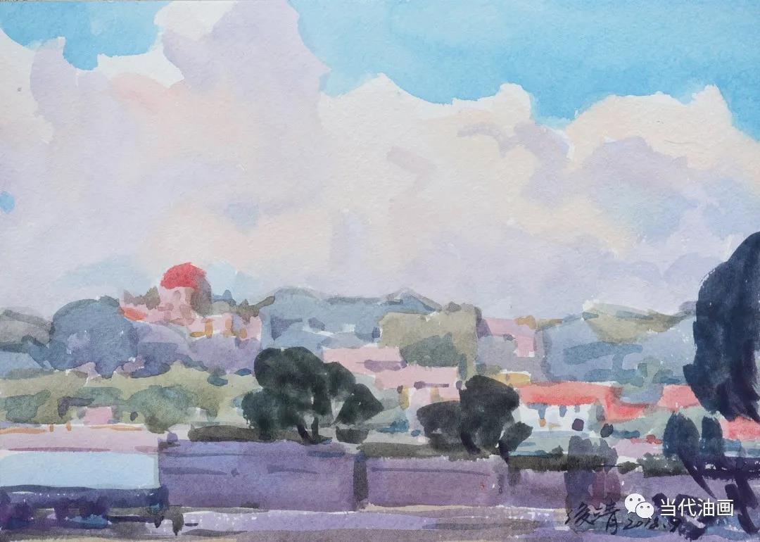 從油畫跨到水彩卻從“淡彩”做起,極迅速地熟悉了水的性能和水彩的輕快用筆,進(jìn)而在小幅中傾瀉謳歌陽光的熱情,這是卓行成效的開局氣象。