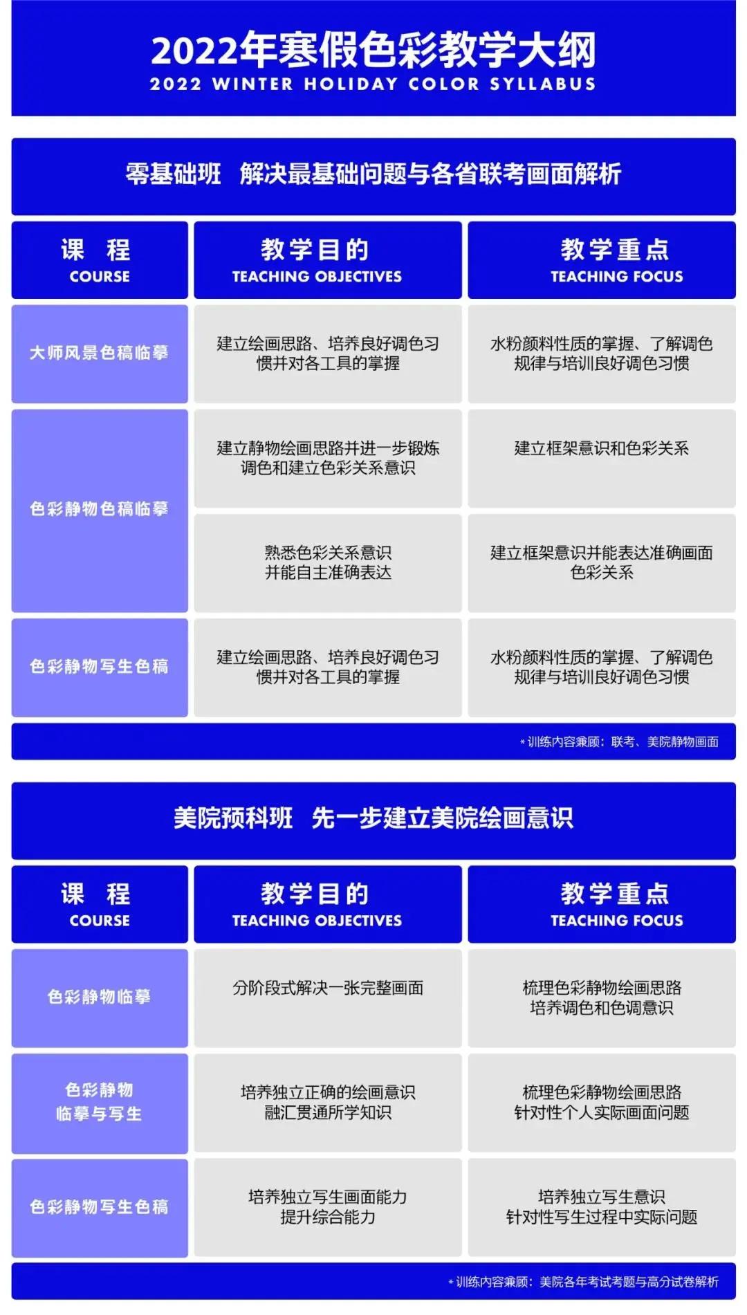 考學(xué)目標(biāo)不同,你需要班型上有更多選擇的寒假班。根據(jù)自身基礎(chǔ)與意向選班,更可主攻單科課程。方向明確,讓你少走彎路,輕松上美院&名校。