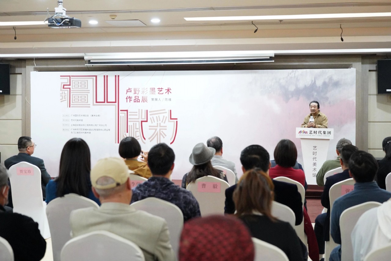 本次展覽的策展人(廣州藝博會組委會主任)陳維作開幕致辭。他分享了本次展覽主題“疆山賦彩”的構(gòu)思來源,盧野彩墨作品在色彩上的運用給人以震撼的視覺美學(xué)效果,在構(gòu)圖上不拘程式,同時繼承了傳統(tǒng)寫意山水畫的精神,展現(xiàn)出當(dāng)代新疆的美麗與活力,他認(rèn)為,盧野的彩墨作品具備永恒的、獨特的學(xué)術(shù)價值、藝術(shù)價值與文化價值!