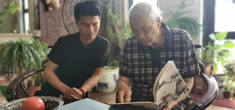 與中國(guó)國(guó)家畫院研究員、高研班導(dǎo)師邢少臣先生在自己作品中合影