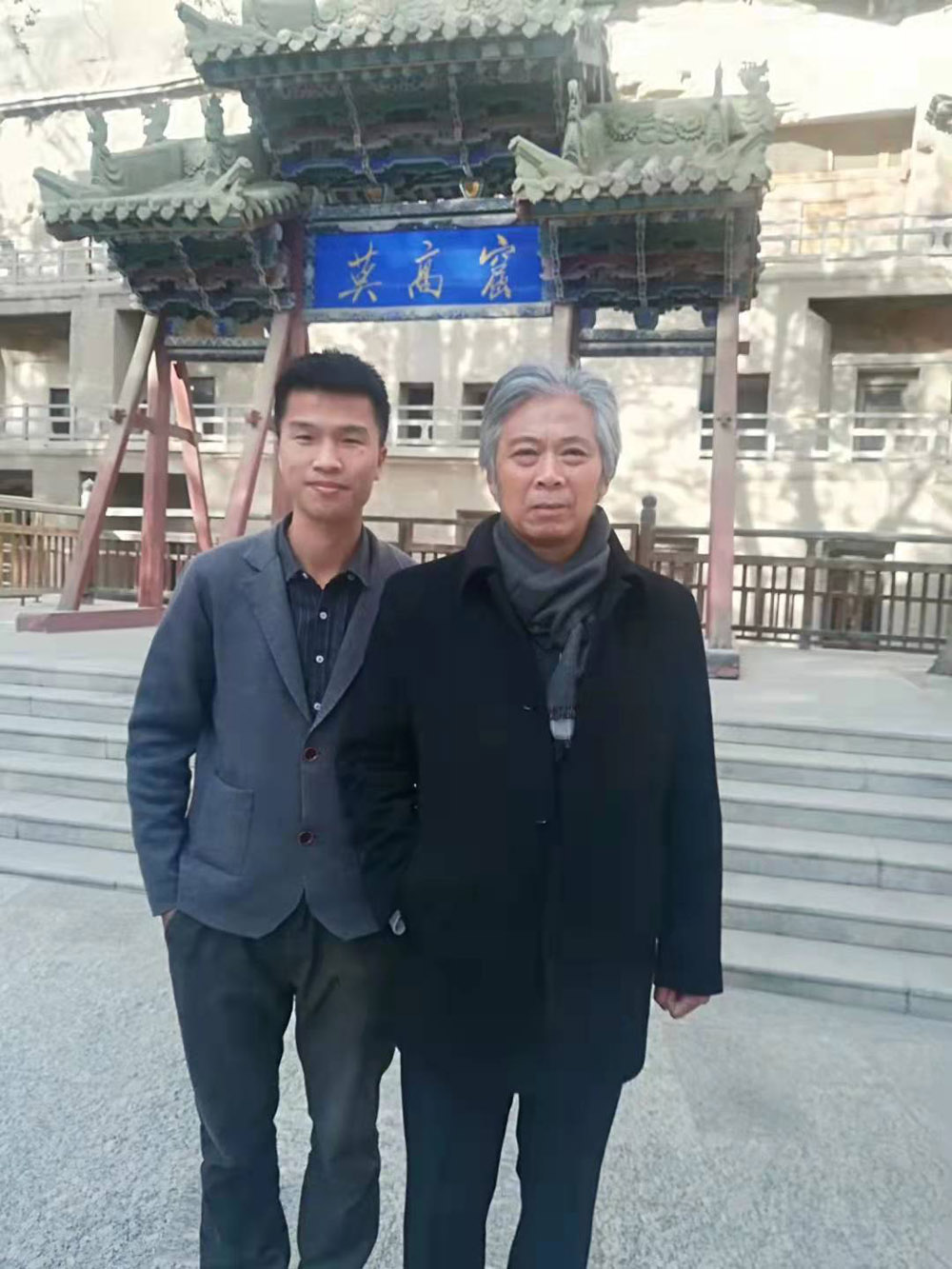 與中央美術(shù)學(xué)院前中國(guó)畫學(xué)院長(zhǎng)唐勇力老師在敦煌莫高窟考察