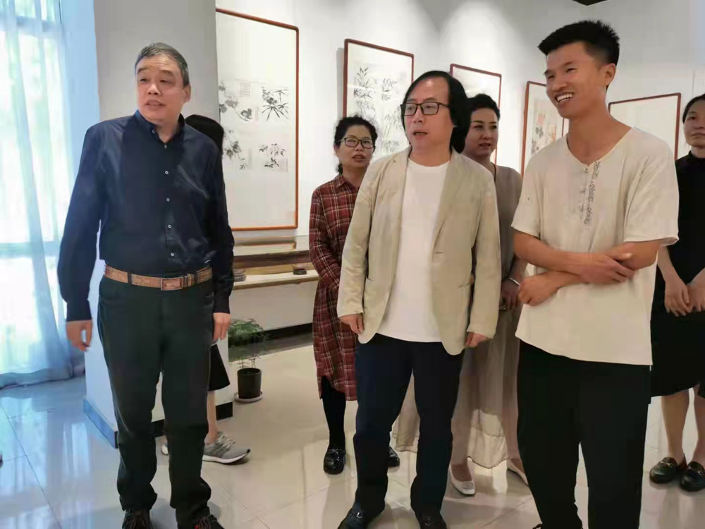與天津美術(shù)學(xué)院教授、博士生導(dǎo)師霍春陽先生觀摩自己作品