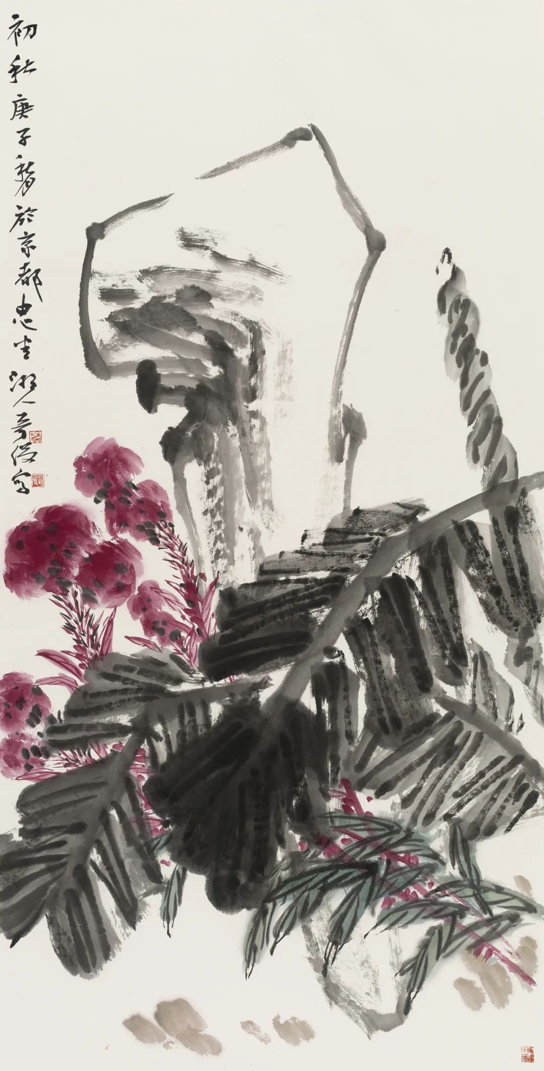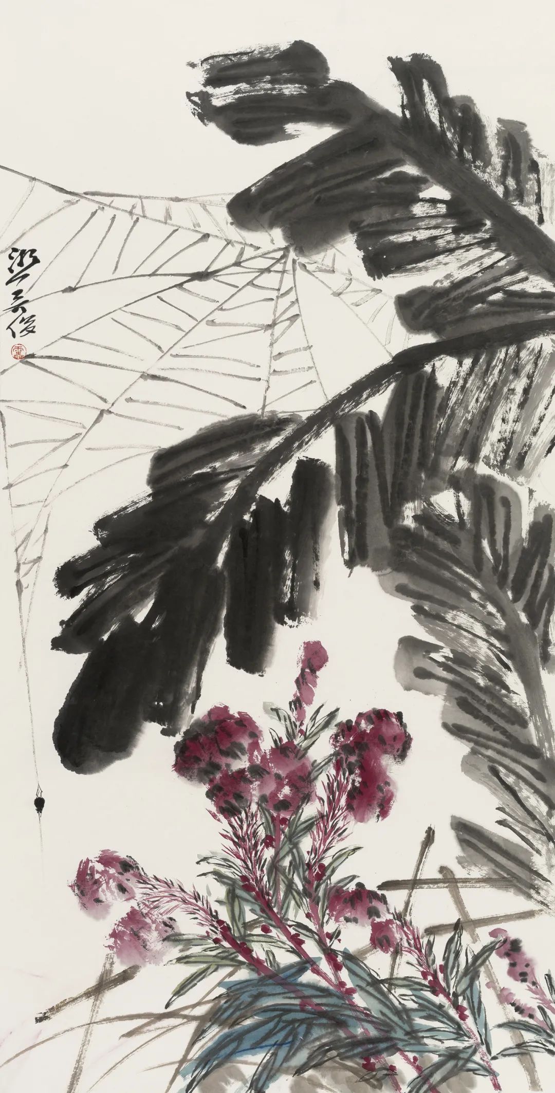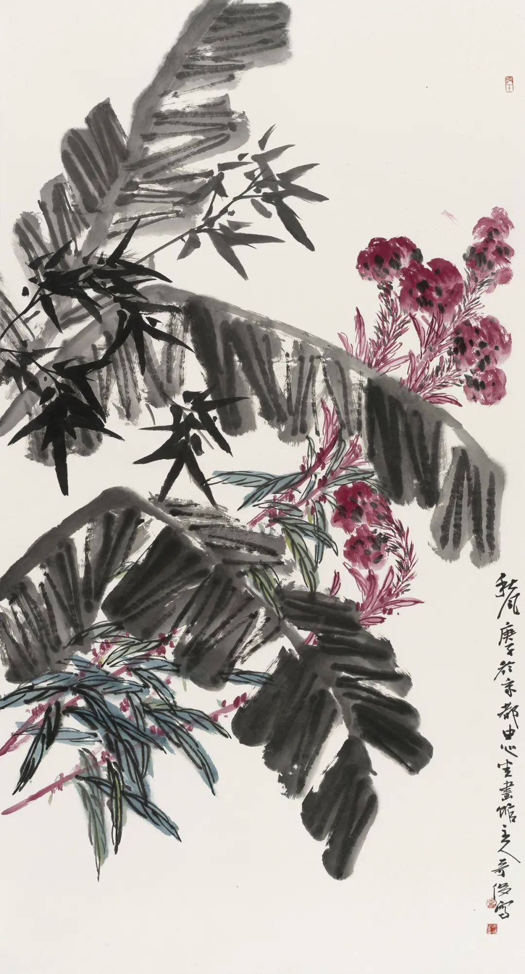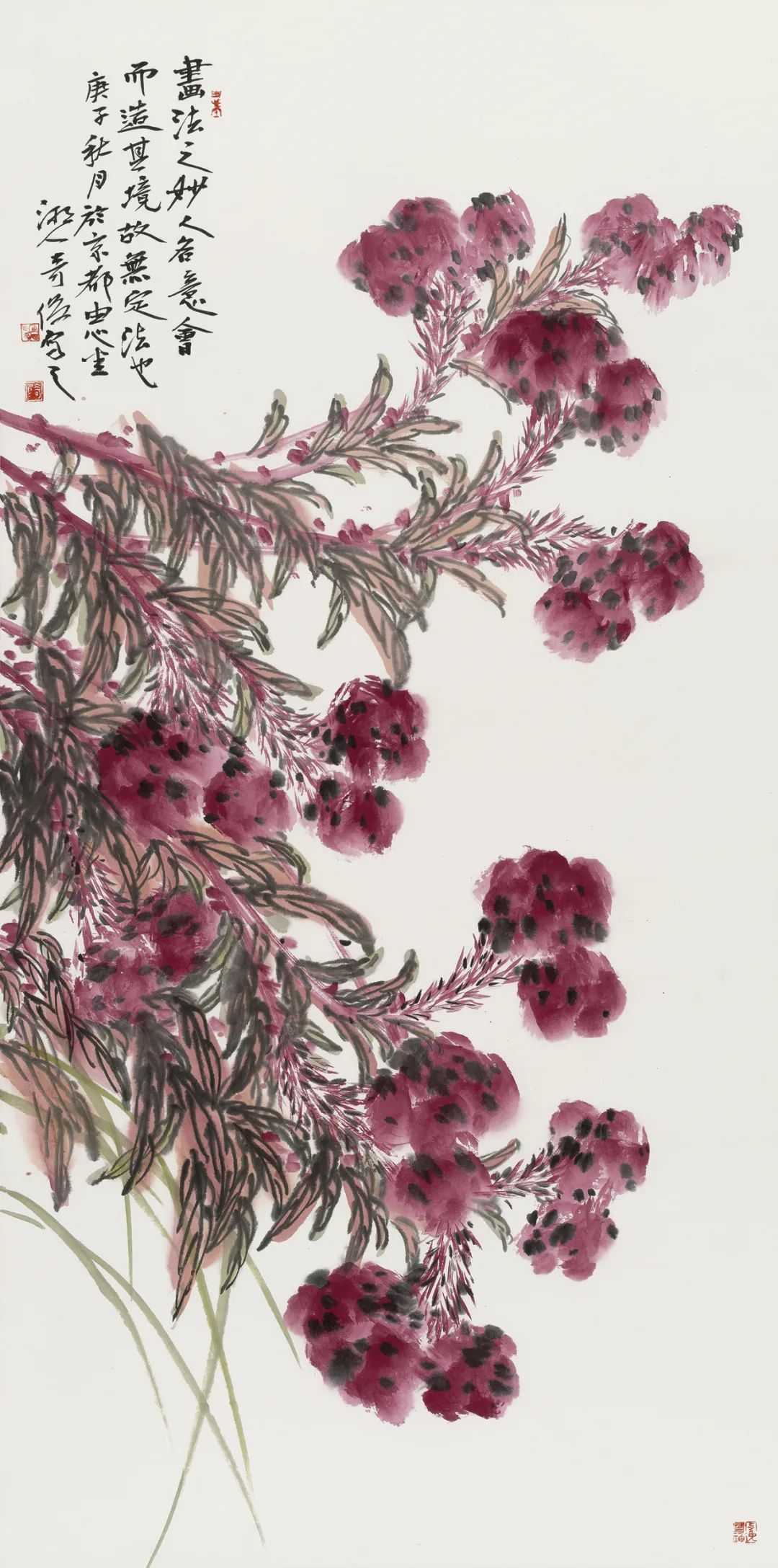 紅綠之間 紙本設(shè)色 136X68cm 2020