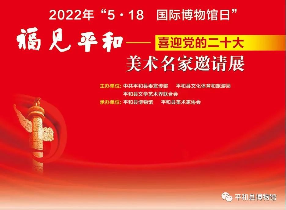 2022年是喜迎黨的二十大勝利召開的光輝年份,為更好展現(xiàn)蘇區(qū)發(fā)展新變化,展現(xiàn)我縣文藝界新作為、新面貌,加強藝術(shù)交流,結(jié)合“5·18國際博物館日”,特別是2022年“5·18國際博物館日”的主題是“博物館的力量”,旨在強調(diào)博物館擁有影響人類世界的巨大潛力和強大能力,呼吁各界共同建設(shè)更美好的未來。特舉辦“福見平和—喜迎黨的二十大美術(shù)名家邀請展”。這次美術(shù)精品展,將是我縣文藝界的一件大喜事,是一次難得的藝術(shù)盛宴。