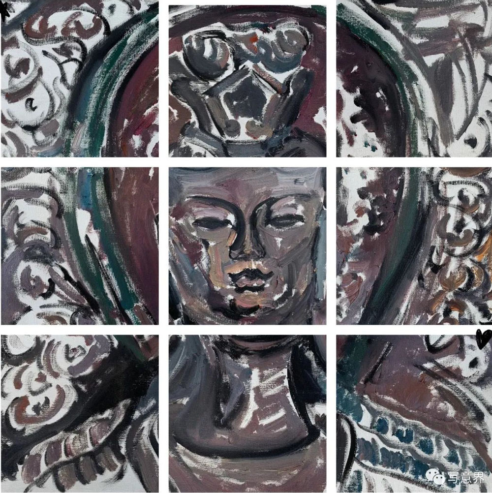 返鄉(xiāng)的小何潛心尚學(xué),善思敏行,交談中能感受到他正處于藝術(shù)創(chuàng)作探索的一種轉(zhuǎn)折期,時常會有畫什么、怎么畫的焦慮,目標(biāo)還有些模糊,仍在尋找著更為明確的方向。這種方向并非是一種風(fēng)格層面的問題,而是每個藝術(shù)家在其生涯中都將面臨的課題,即需要找到一種自我的文化信仰與支撐藝術(shù)生命力的源泉。當(dāng)時,我建議他嘗試挖掘身邊深厚的文化資源,從炳靈寺石窟、壁畫及造像等遺跡中入手取得破立之道。