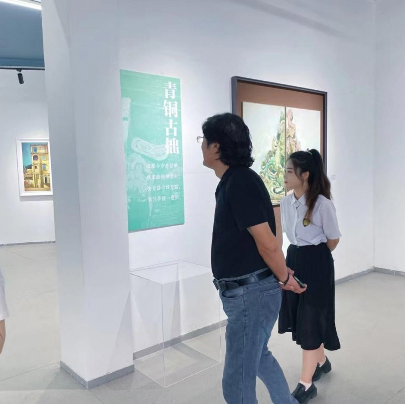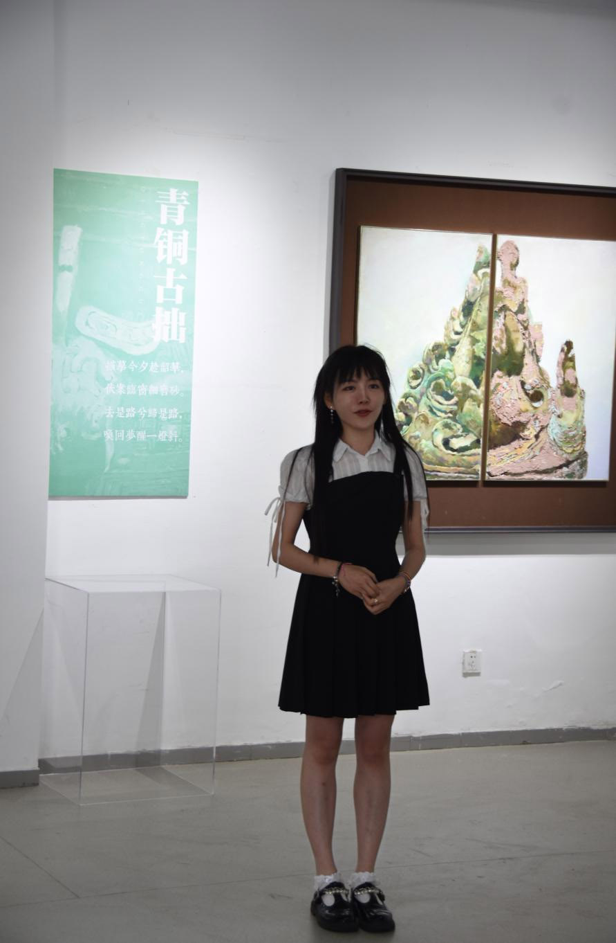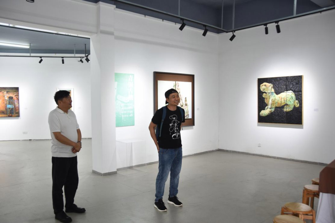 此次展覽是我院美術(shù)系油畫研究生邱俊熔同學(xué),通過三年學(xué)習(xí)油畫的成果,整理收集近30幅綜合材料繪畫作品首次亮相,展覽由4個(gè)系列組成——青銅古拙、魂棲虎兮、世紀(jì)敦煌、百年商埠。