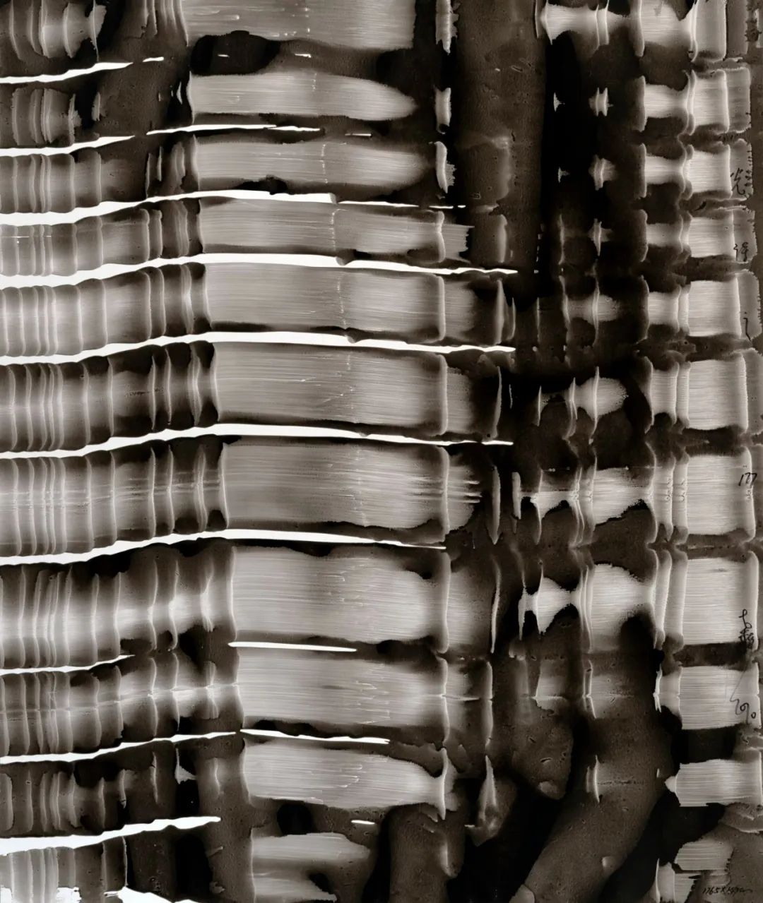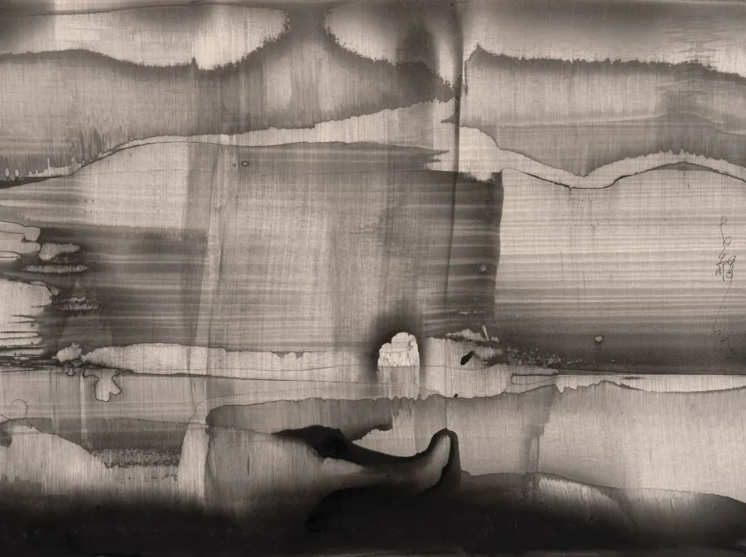 紀(jì)余夫:作品中的光詩系列要表達(dá)什么?還有2022年最新的展覽《對(duì)空的審判》,比如之37,也是作為封面圖,光從水墨的黑暗之中發(fā)生,光在整個(gè)水墨的畫面上,顯現(xiàn)出色塊,就像創(chuàng)造世界的第一縷光,那涌動(dòng)的光波,是靈光,有著音樂的節(jié)奏,顯現(xiàn)的黑色的方塊就像鋼琴的鍵盤,畫面上面有水墨在起舞在跳躍也像在祈禱,我感覺您的作品,不是讓人看,而是在召喚讓人來聽,您是怎么看的?