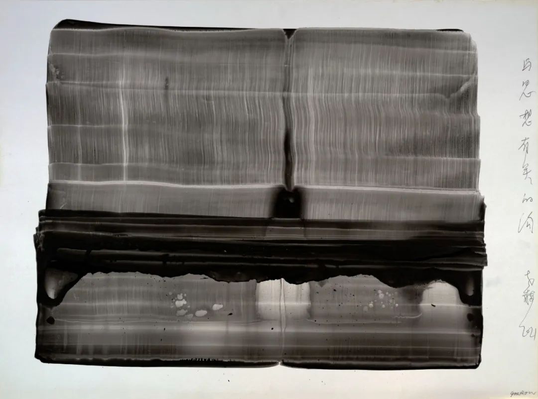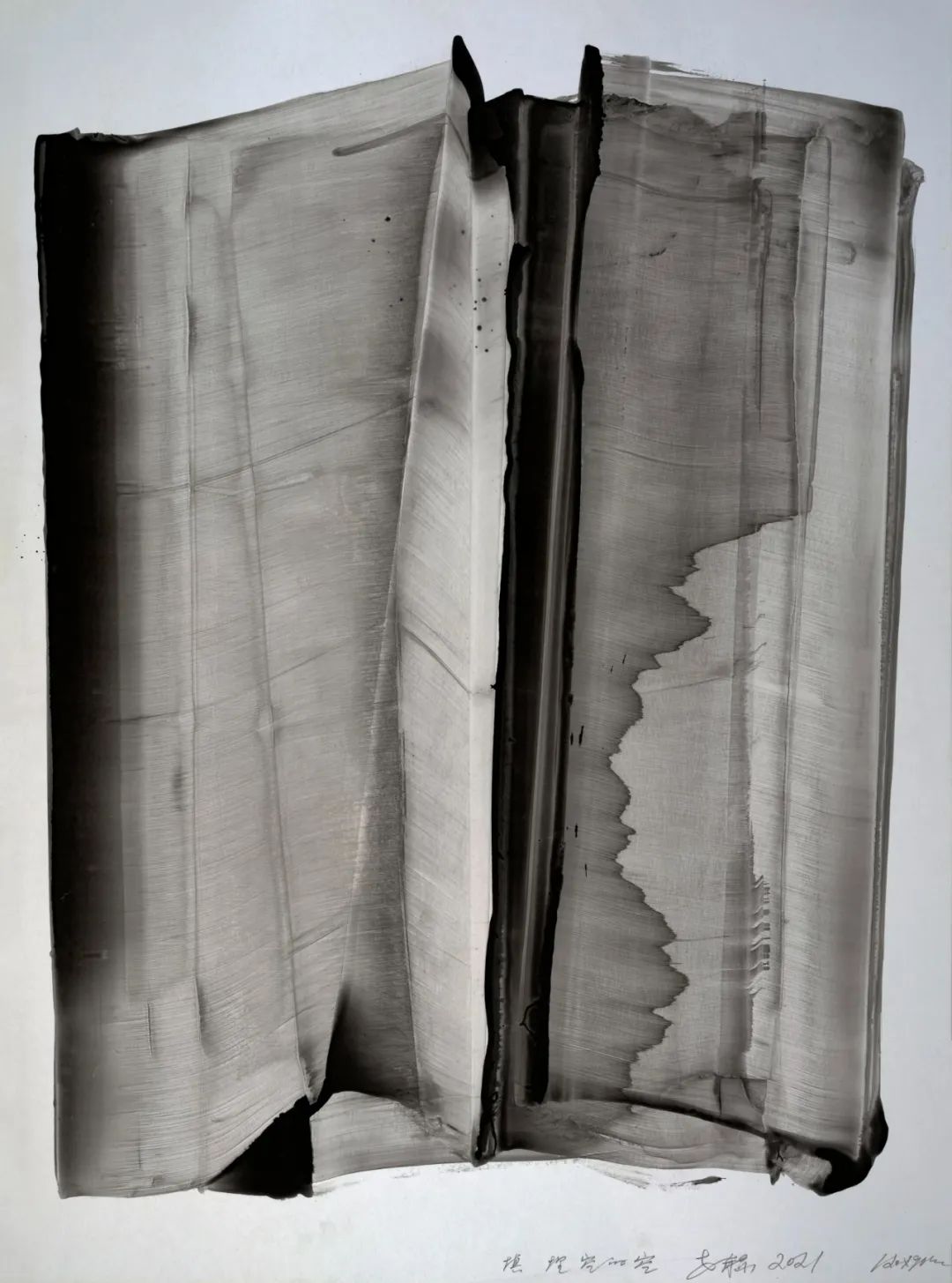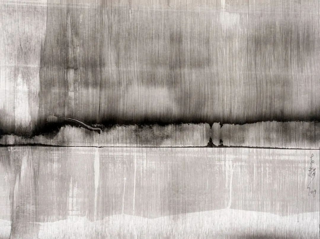 紀(jì)余夫:在您的作品中,那種抽象的黑,抽象的白,抽象的灰,在極黑、或極白、或極灰、極虛之間,除此以外,就干干凈凈的什么也沒有,既抽象又幻化,要把人逼進(jìn)一種靜默或者恍惚、沉默的狀態(tài),有一種壓迫感,但認(rèn)真一看又有呼吸感、輕逸感,無數(shù)的細(xì)線在震蕩,好像在不斷的喃喃低語,比如2020年創(chuàng)作的對(duì)空的審判系列等等,似乎在召喚人在藝術(shù)中完成一種救贖,可以讓破碎的心靈找到一種釋放,一個(gè)重新呼吸的地帶,不知道您在創(chuàng)作過程是一種什么樣的內(nèi)在心里的想法?