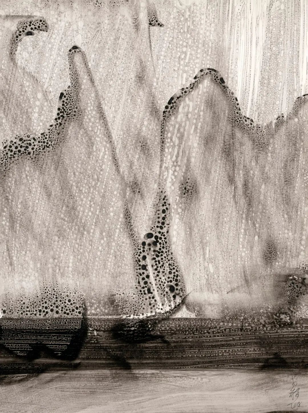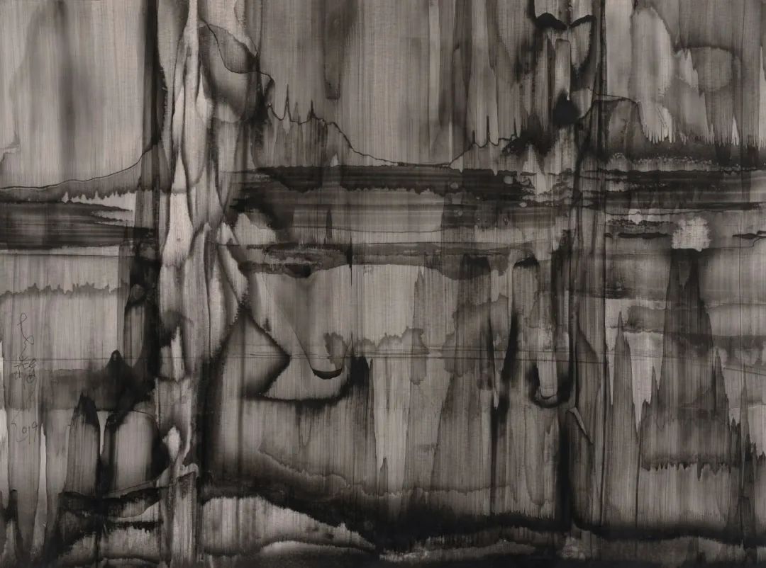 老赫,有關(guān)波 波能的猜想的水墨視覺化,160x595.5cm,2019年