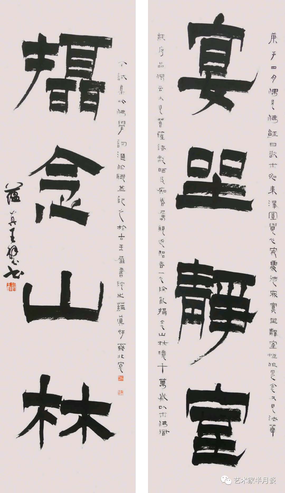 ▲ 作品名稱:隸書對聯(lián)《宴坐?攝念聯(lián)句》