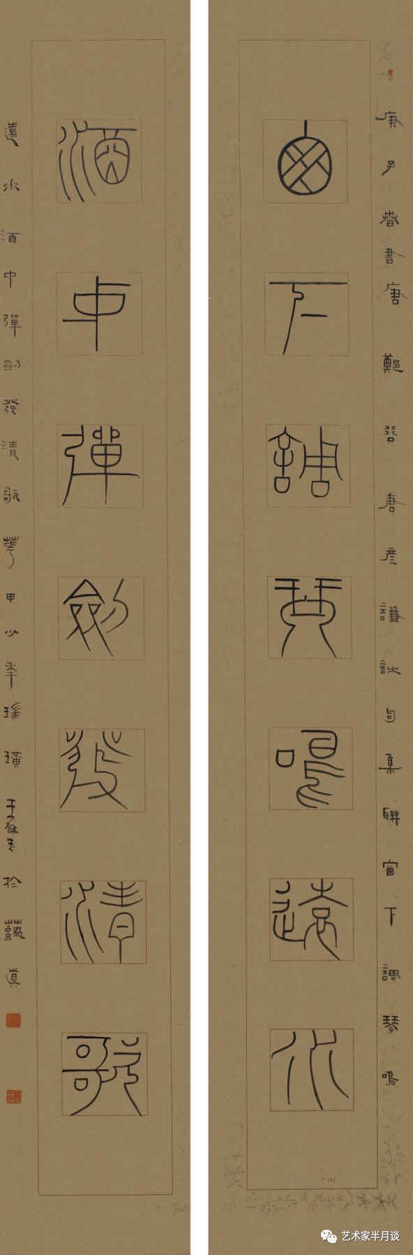 ▲ 作品名稱:隸書對聯(lián)《金石?雪霜聯(lián)句》