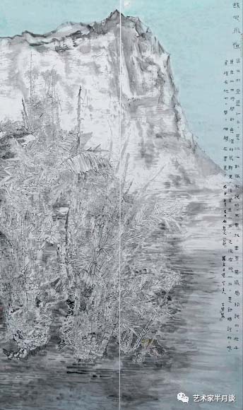 ▲ 作品名稱:繪畫山水中堂《擬弘仁山水兼評石濤繪事》