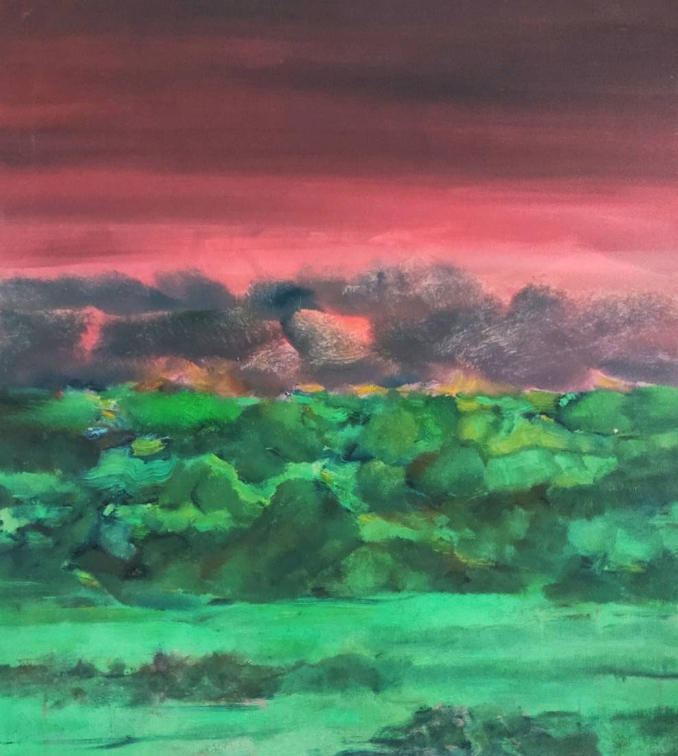 大多風(fēng)景都是憑記憶回工作室完成,我更強調(diào)現(xiàn)場的感受,對景寫生往往會削弱主觀感覺。這種感受不僅僅是視覺上的,還有聽覺和嗅覺所引起的各種感官的享受,如山風(fēng)吹著樹葉時今人愉悅的聲響,以及泥土、山花特殊的香味都會影響我的創(chuàng)作。