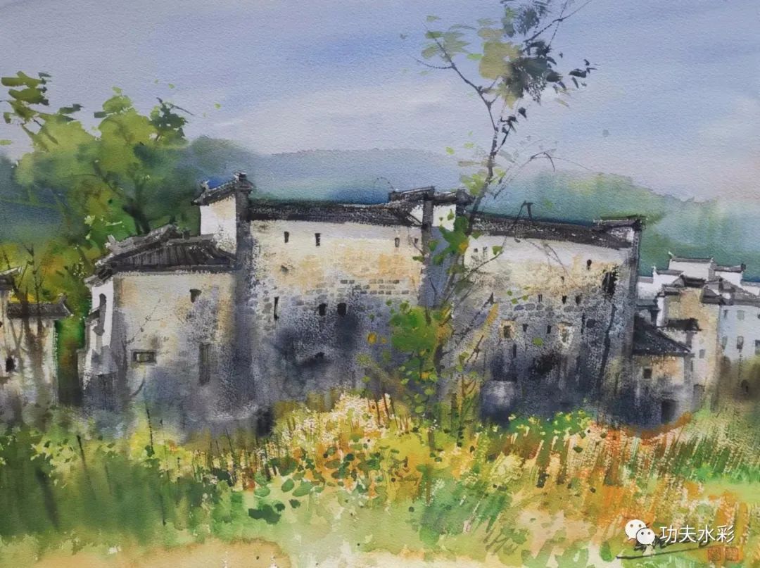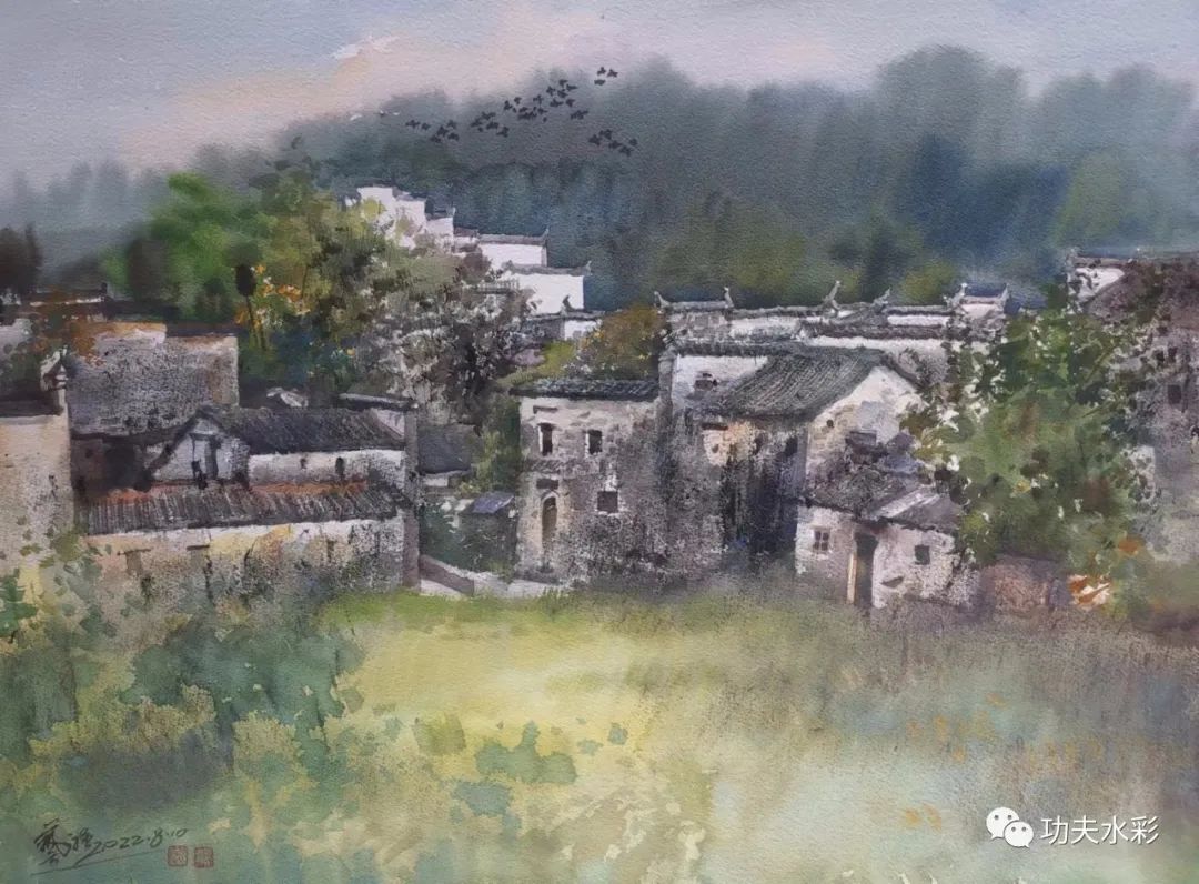 《古樟之夢一一婺源思口鎮(zhèn)王村寫意》水彩畫 61x46cm