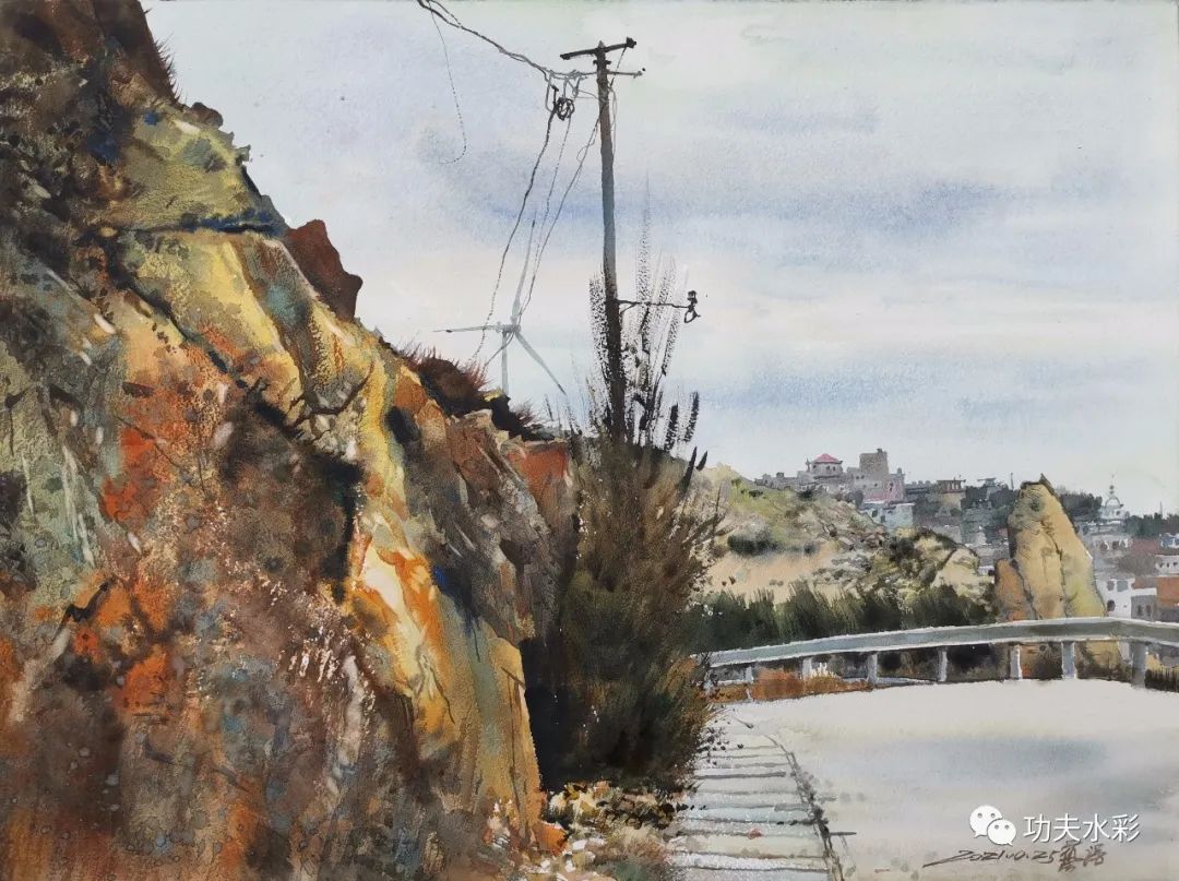 《秋季一一小岞生活藝術(shù)島環(huán)島公路》水彩畫 55x76cm