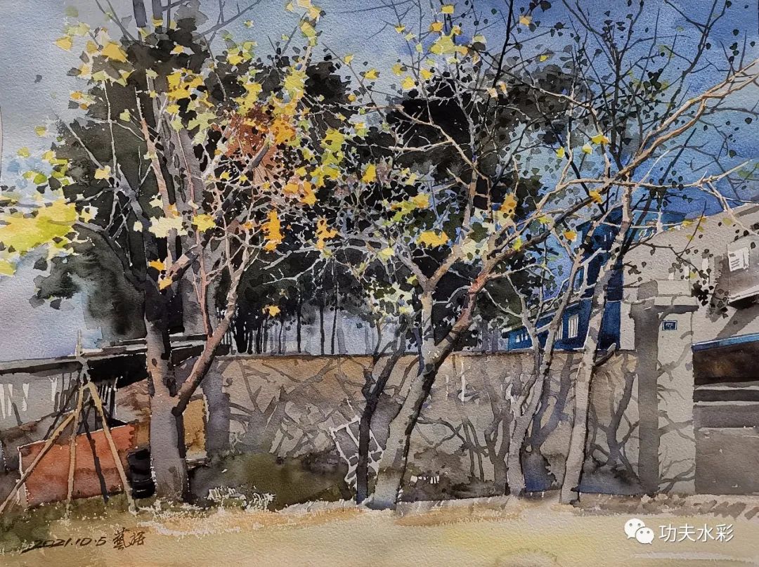 《秋風(fēng)起一一小岞生活藝術(shù)島一角》水彩畫 46x61cm